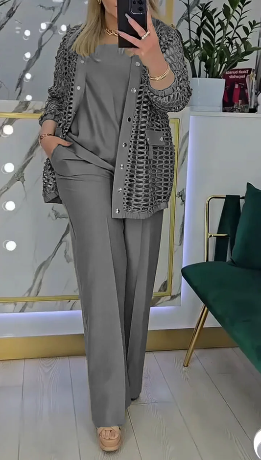Trzyczęściowy damski kombinezon do dojazdów do pracy z wycięciem