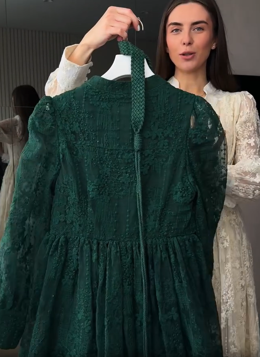 Sukienka damska z dekoltem w serek, bogato haftowana