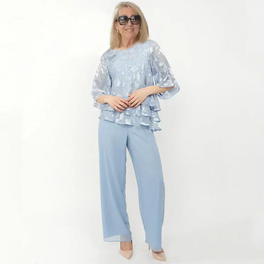 Eleganckie damskie topy z wiązaniem i szerokie spodnie w komplecie