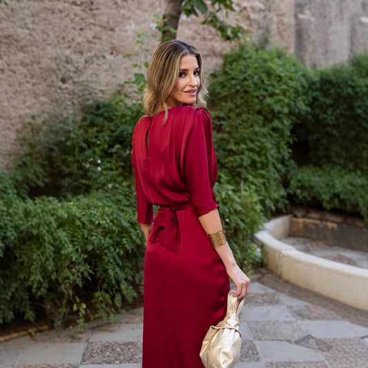 Elegancka sukienka maxi z nadrukiem i paskiem
