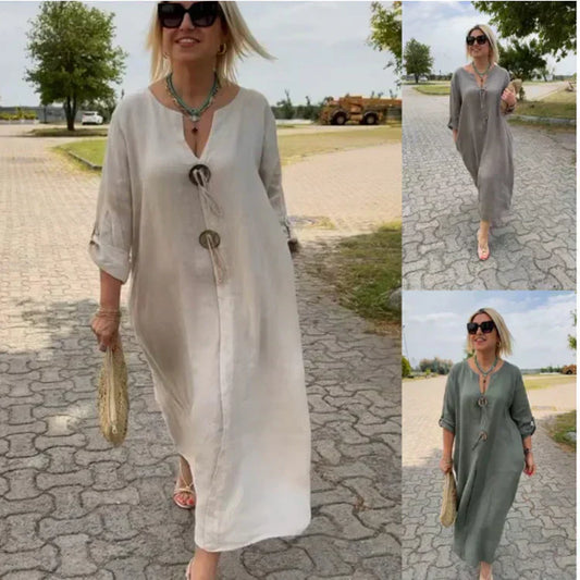 🎁👗Bawełniana i lniana sukienka z dekoltem V