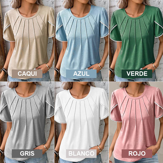 🔥Nowa damska, swobodna, jednokolorowa, koronkowa koszulka z okrągłym dekoltem