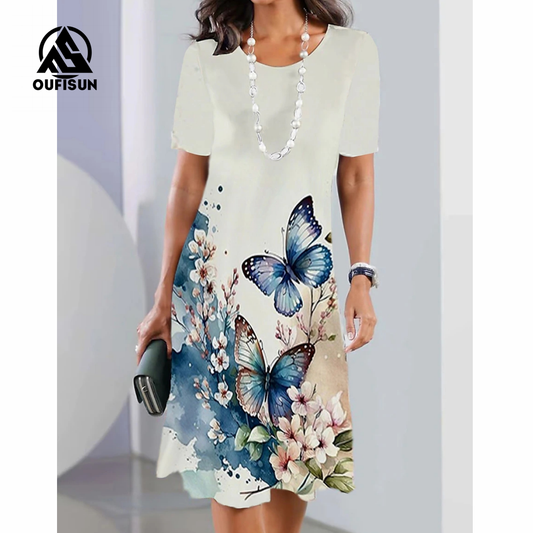 Moda kwiatowy nadruk krótkie rękawowe sukienki Maxi Motyl Kwiatowy długi sukienka