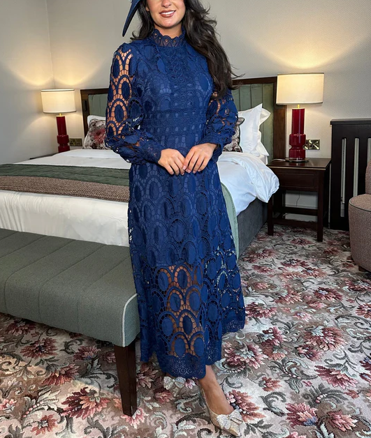 Damska luźna koronkowa sukienka midi