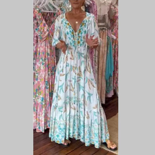 🌸Casualowa kwiatowa sukienka z dekoltem w serek zapinana na guziki