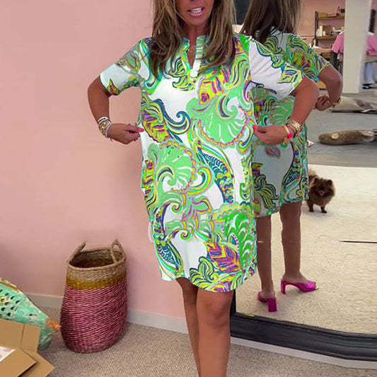 ✨2025 Nowe produkty🌈Damska sukienka z kolorowym nadrukiem i dekoltem w szpic