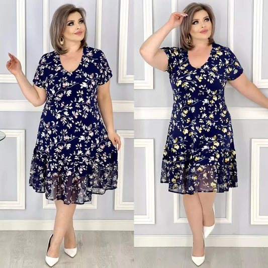 Gorąca wyprzedaż - modna sukienka w dużym rozmiarze z nadrukiem