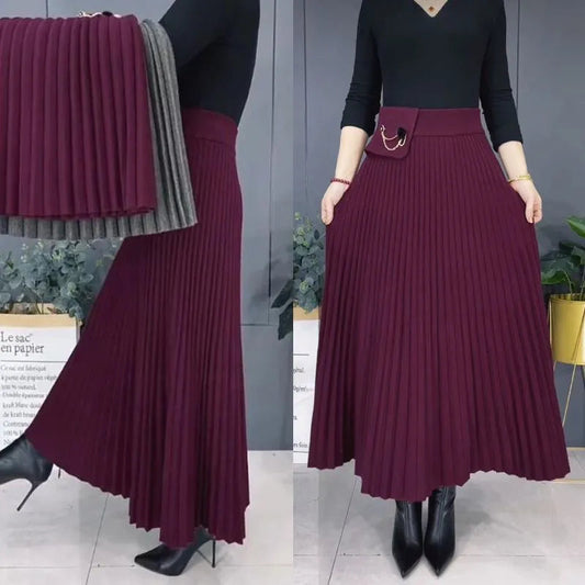 Elegancka, jednokolorowa, miękka plisowana spódnica o linii A