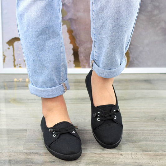 CZARNE MATERIAŁOWE WYCIĘTE TENISÓWKI BALERINKI DAMSKIE NA LATO