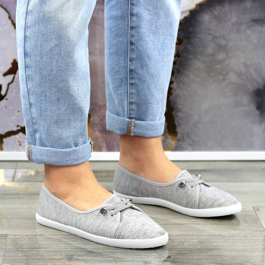 SZARE MATERIAŁOWE WYCIĘTE TENISÓWKI BALERINKI DAMSKIE NA LATO