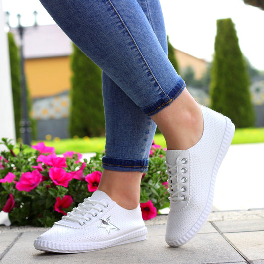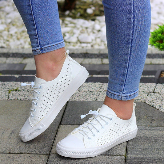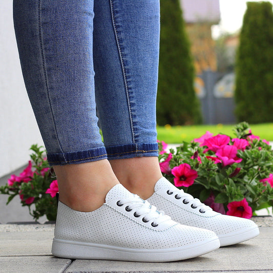 Miękkie, wygodne białe tenisówki damskie w dziurki Great