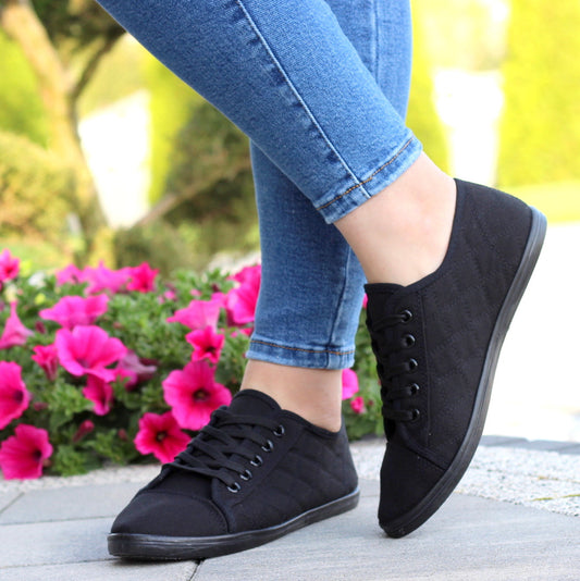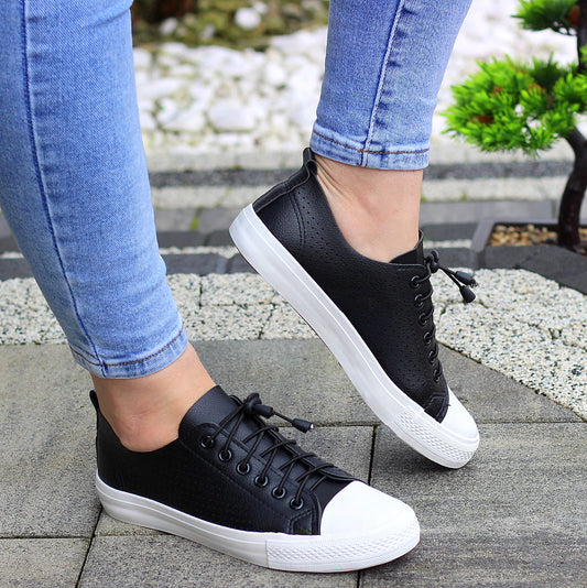 Miękkie, wygodne czarne tenisówki damskie w dziurki Great