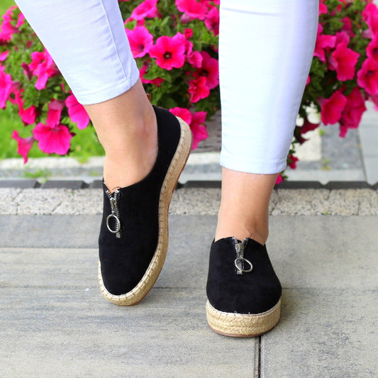 Modne Czarne Zabudowane Espadryle Gruba Podeszwa Suwak