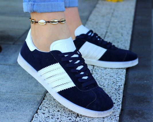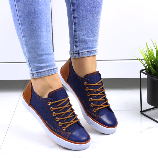 Granatowe tenisówki damskie sznurowane z paskami