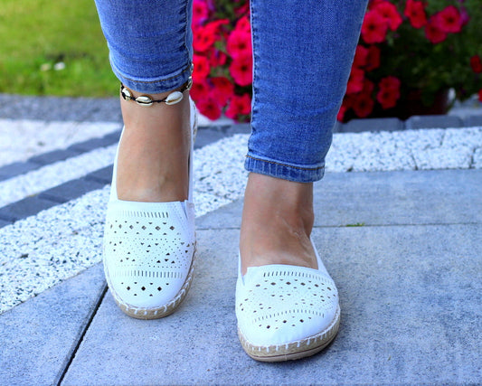 W promocjiBiałe płaskie espadryle z ażurowym wzorem