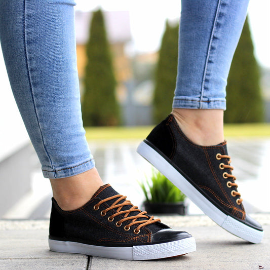 Jeansowe Sznurowane Sportowe Tenisówki Trampki Damskie black
