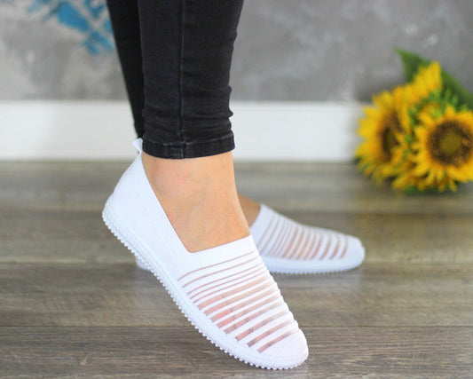 Białe elastyczne tenisówki damskie z lycry all white air