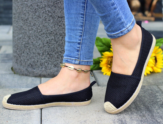 W promocjiCzarne koronkowe płaskie espadryle