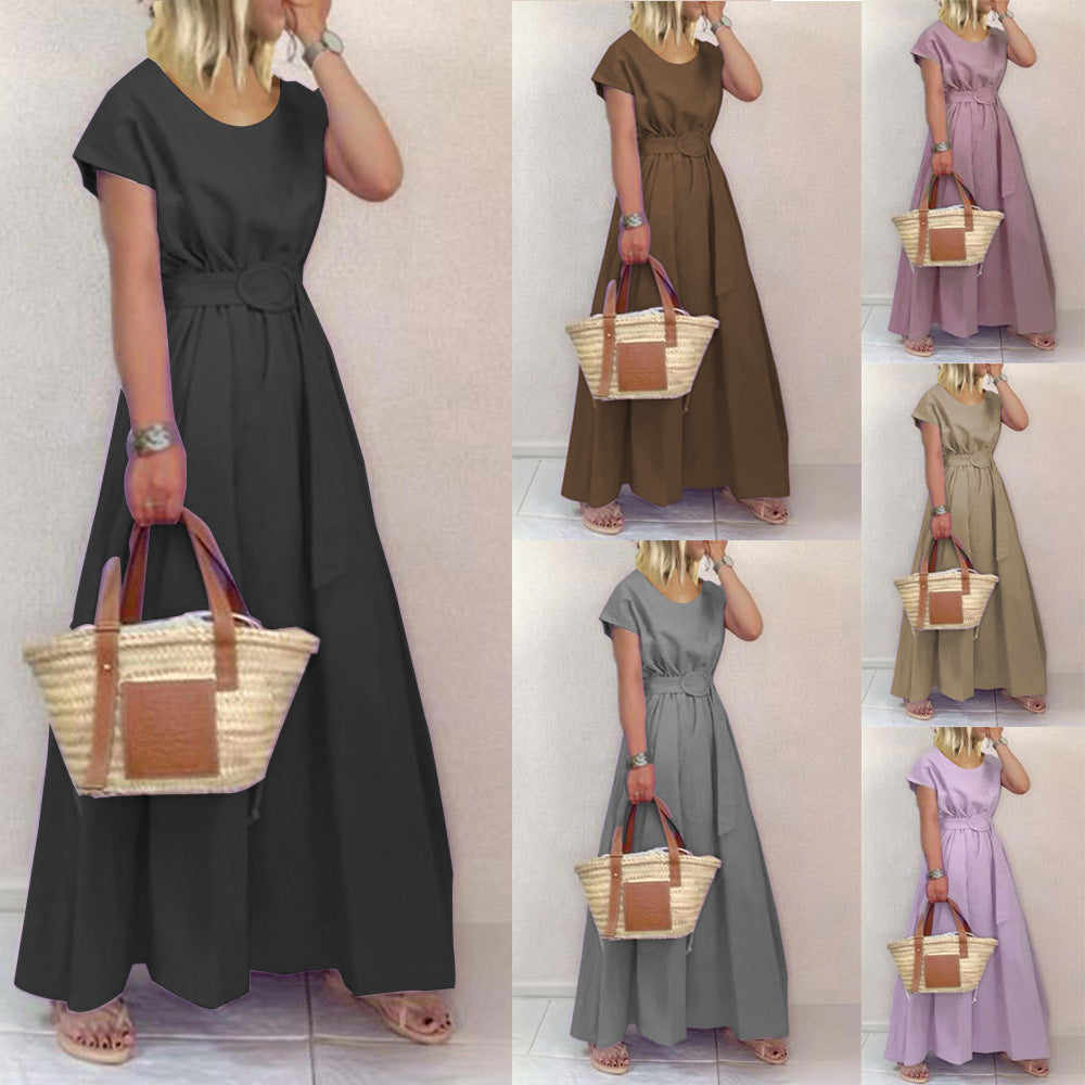 2023 sukienka z okrągłym dekoltem jednokolorowa duża sukienka z rozkloszowanym talią,