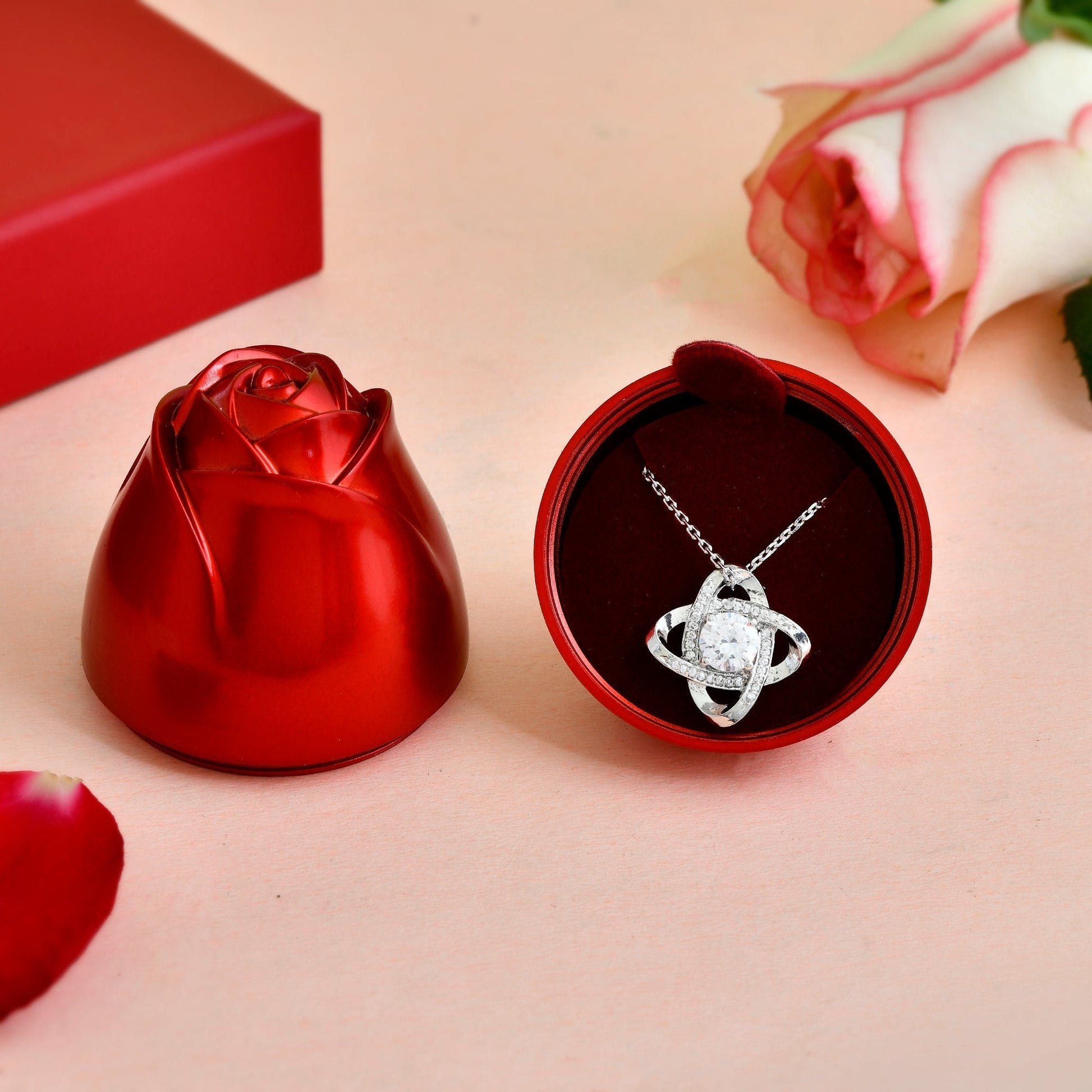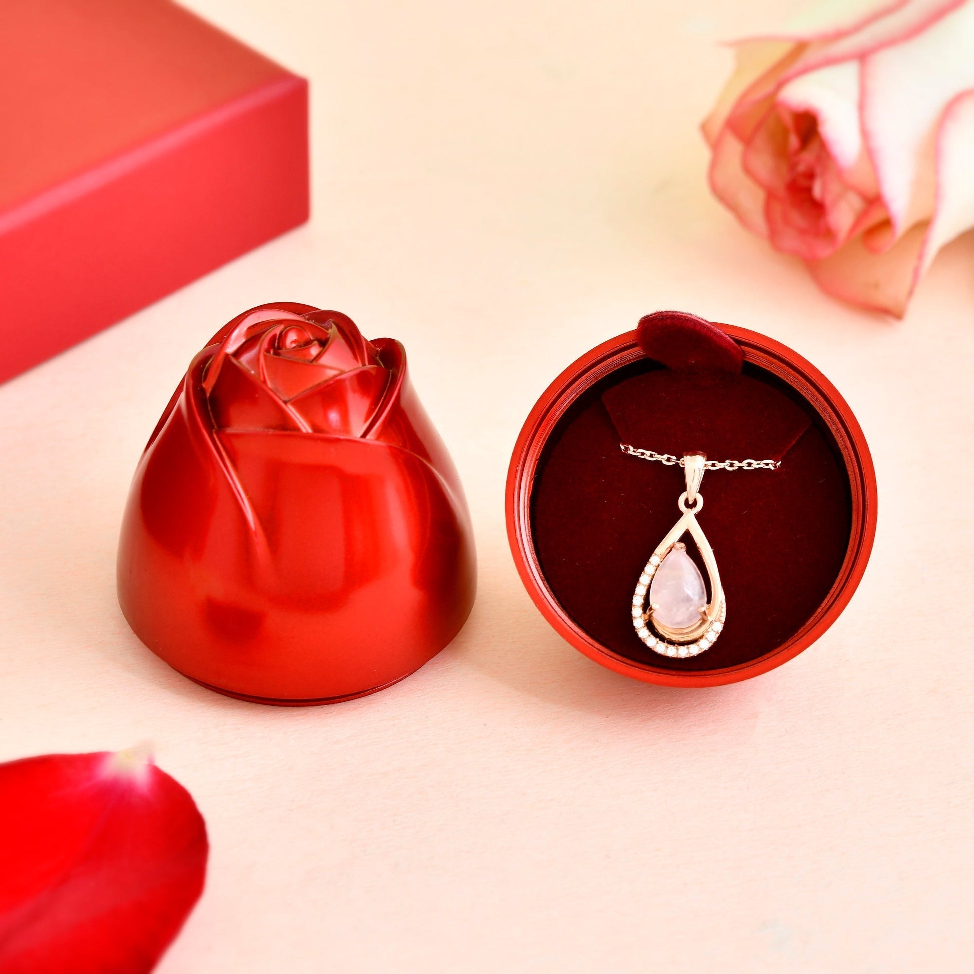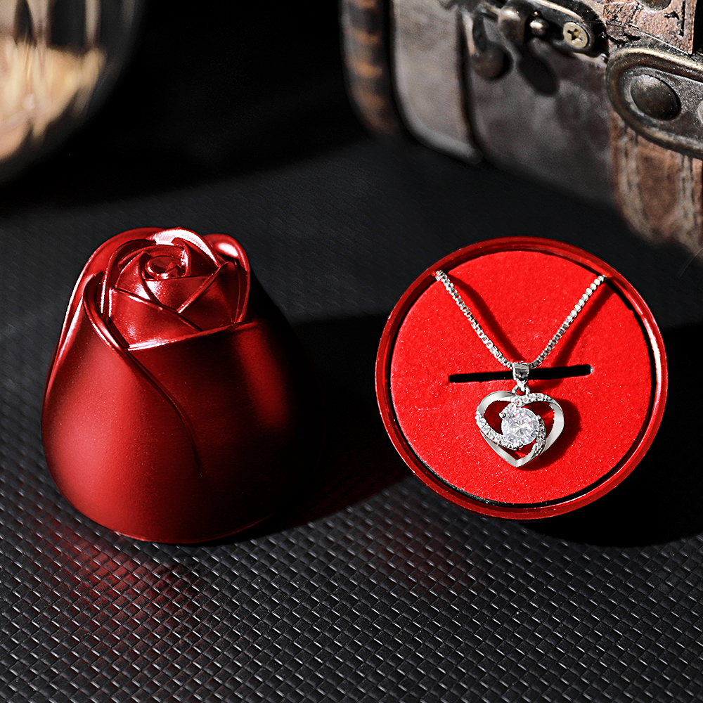 Set cadou colier cu pandantiv în formă de inimă și fir de trandafir