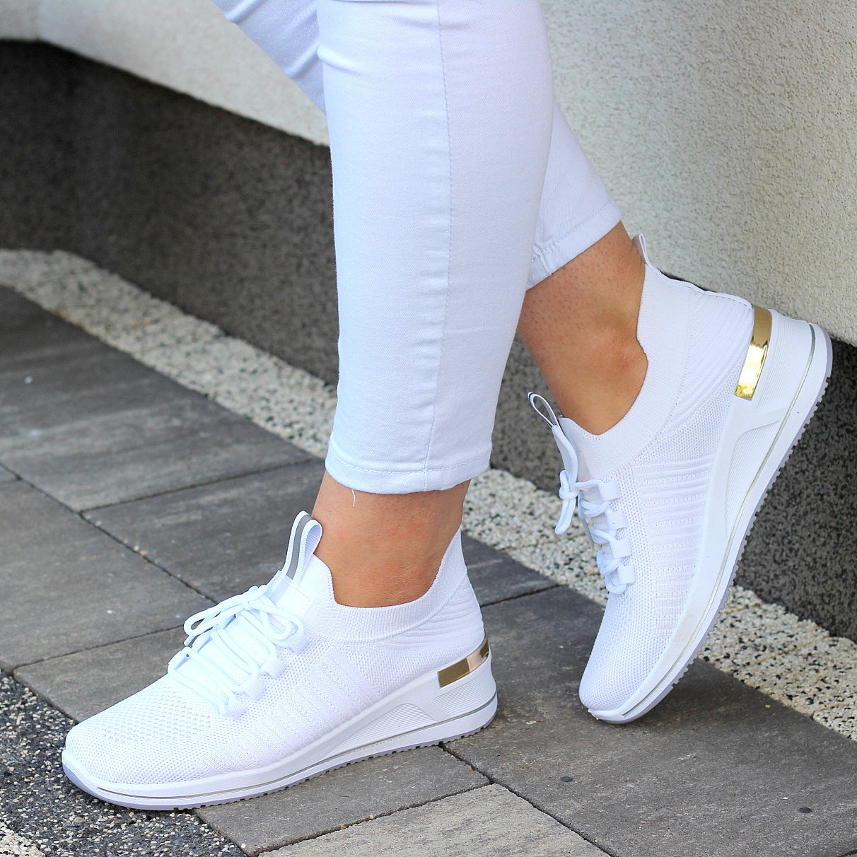 BIAŁE ADIDASY ELASTYCZNE NA LATO NA GRUBSZEJ PODESZWIE