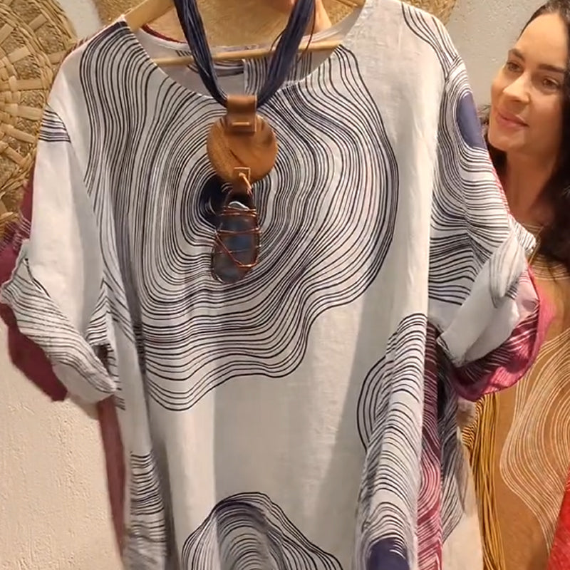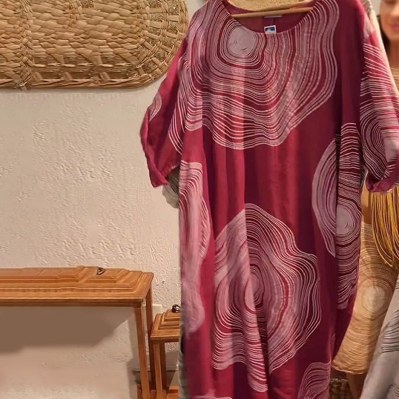Luźny krój - Zaprojektowana w luźnym i pochlebnym kroju, ta sukienka jest przewiewna i można się w niej swobodnie poruszać. Delikatnie układa się na ciele i jest idealna na ciepłe lub chłodne pory roku.