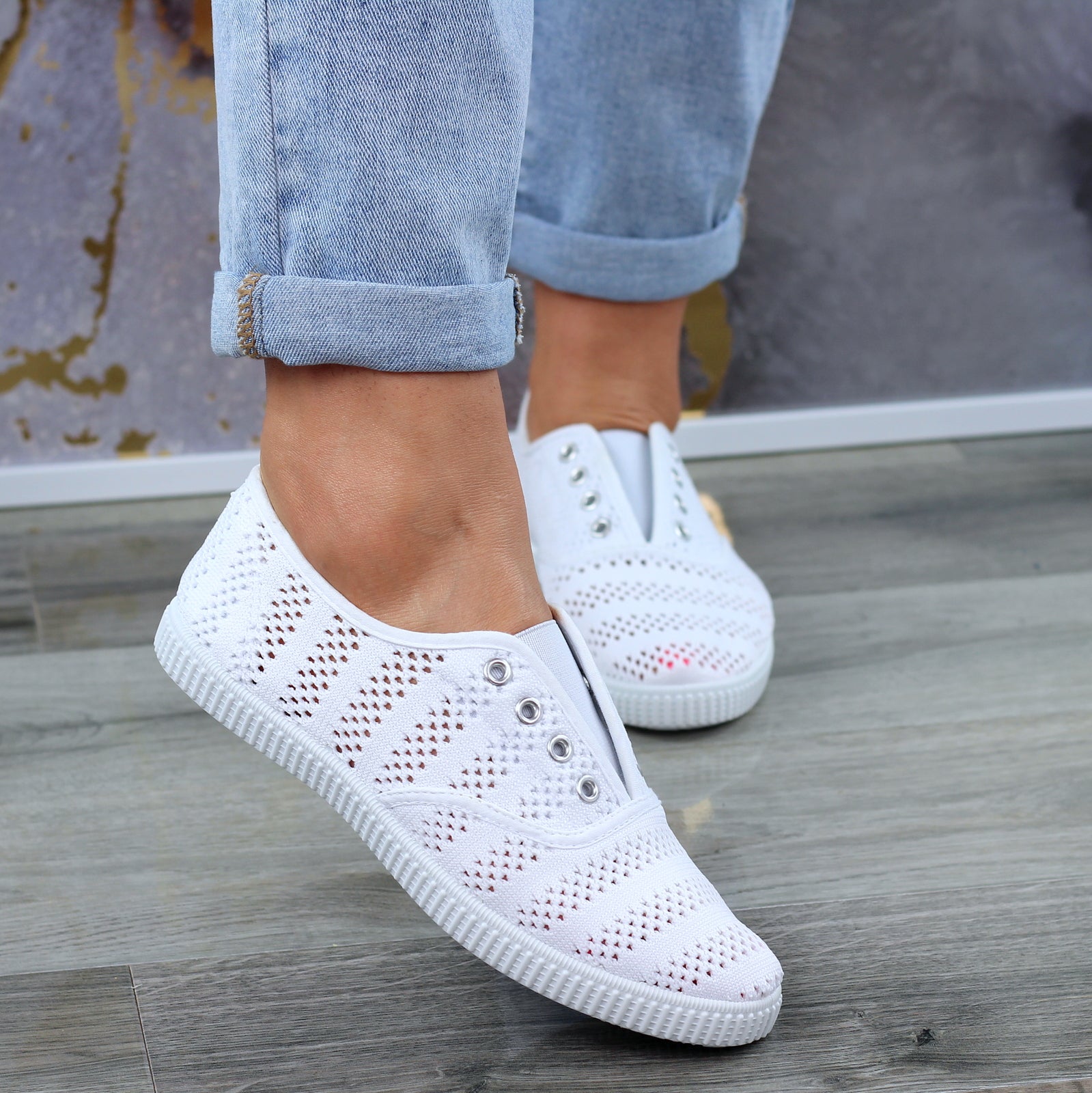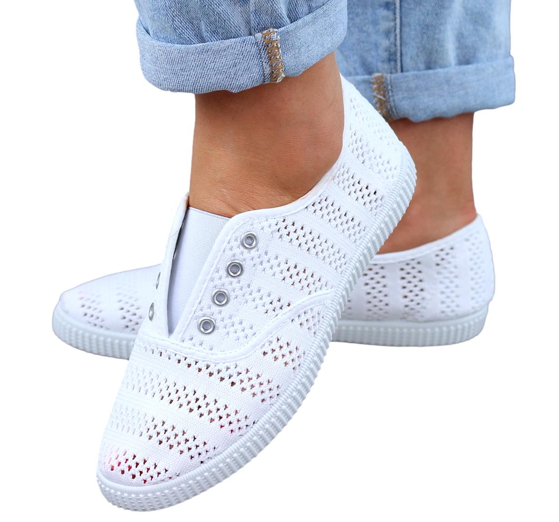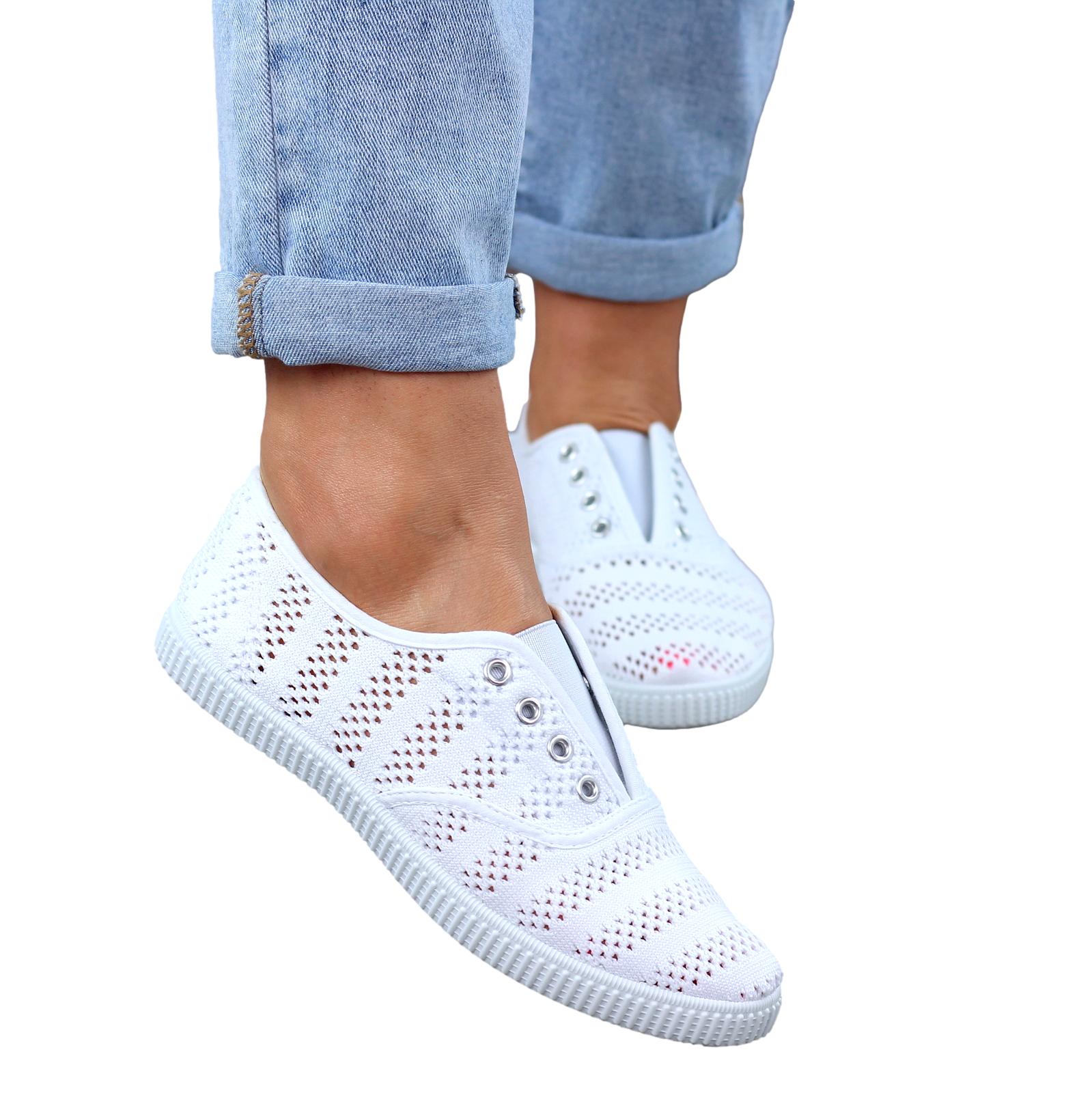 Białe Wygodne Koronkowe Trampki Tenisówki Damskie WSUWANE NA GUMKĘ