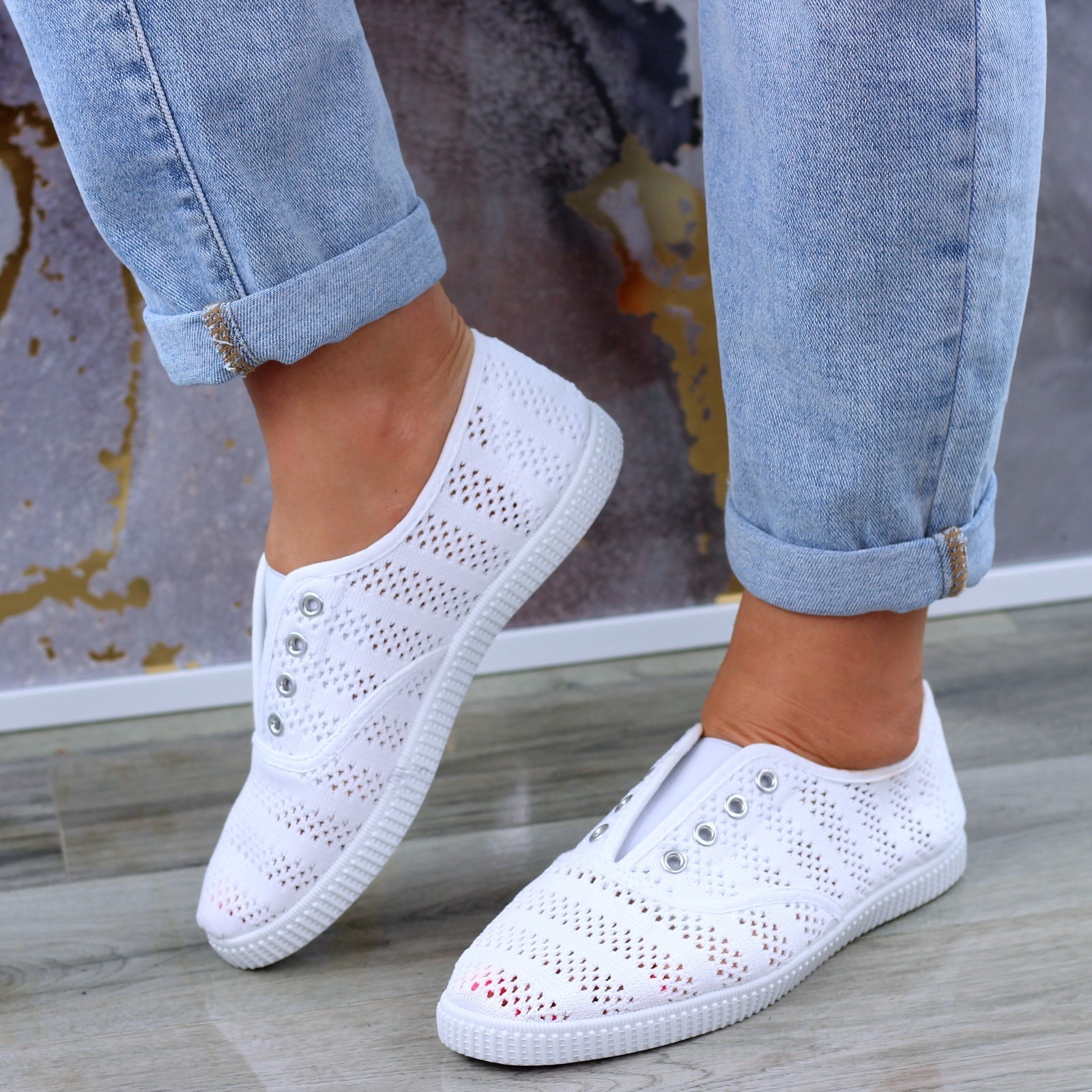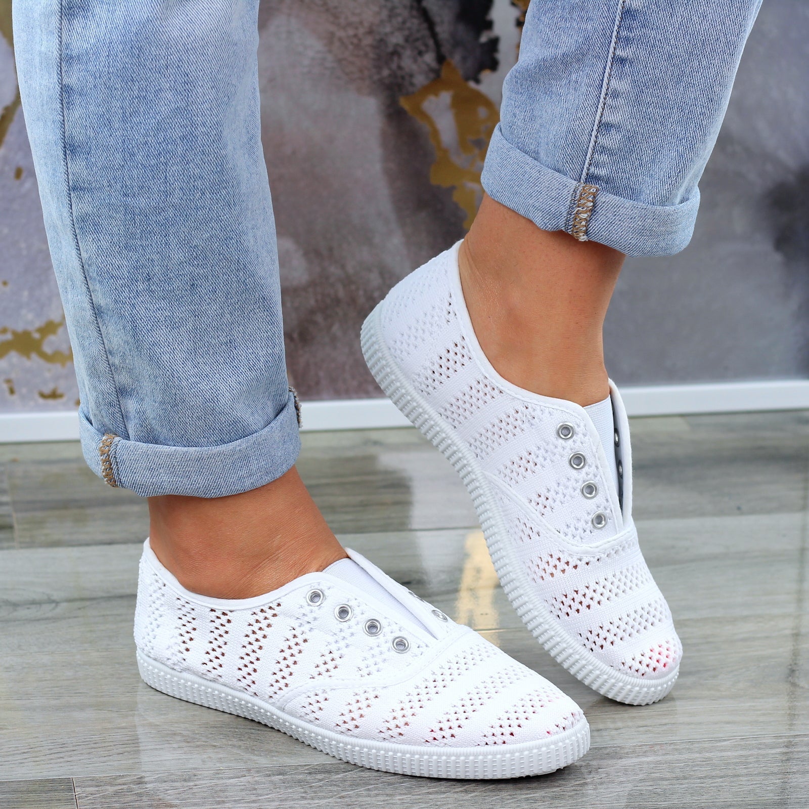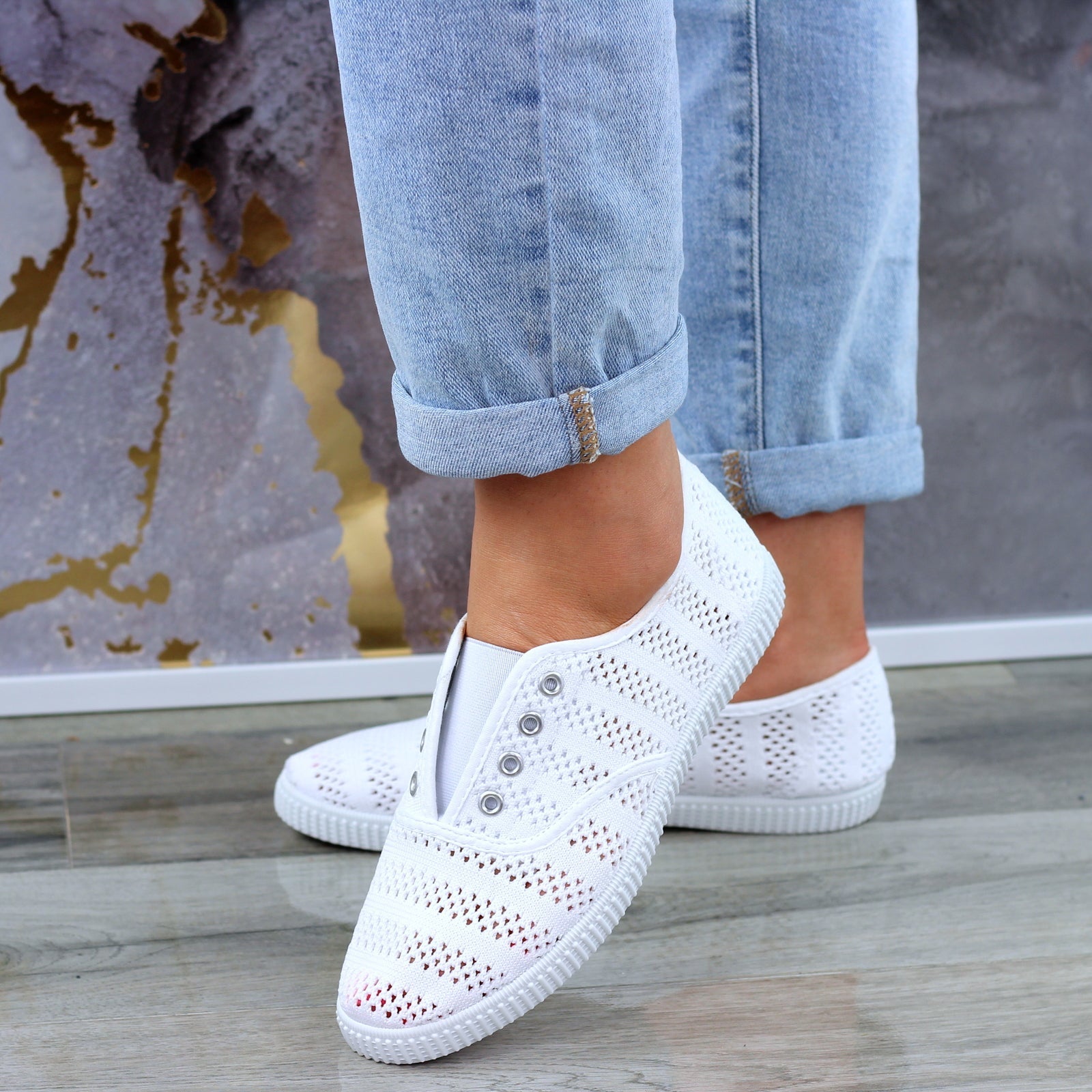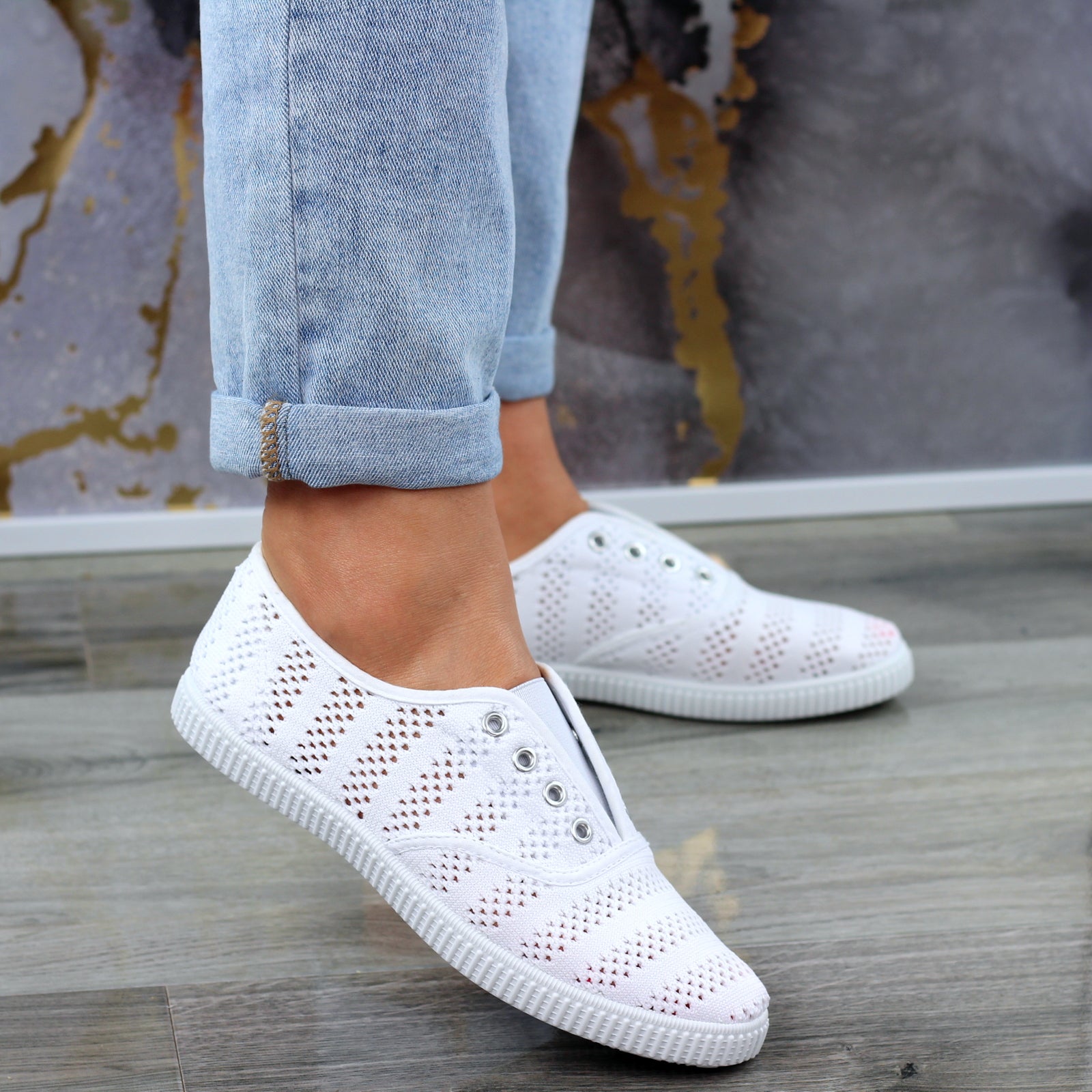 Białe Wygodne Koronkowe Trampki Tenisówki Damskie WSUWANE NA GUMKĘ