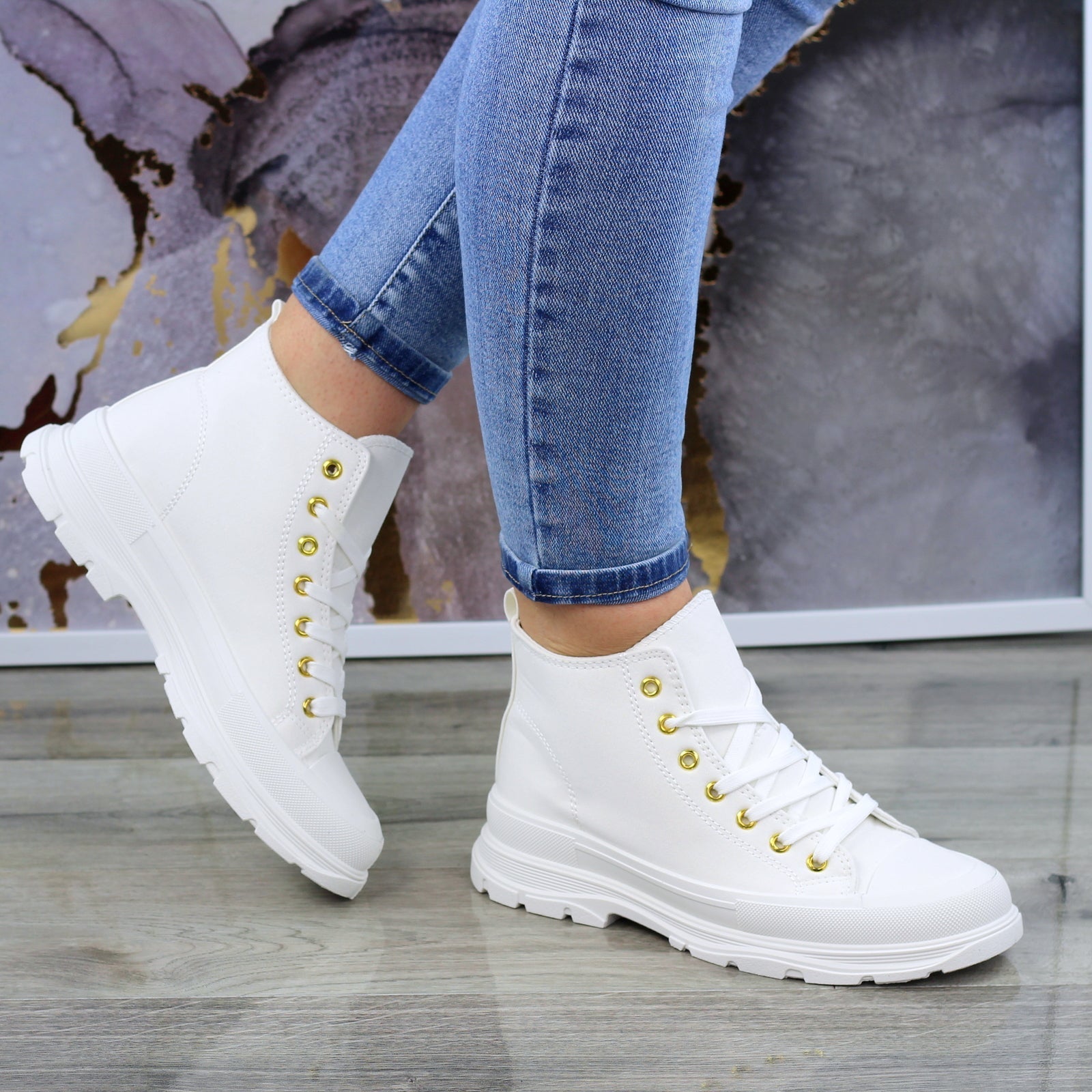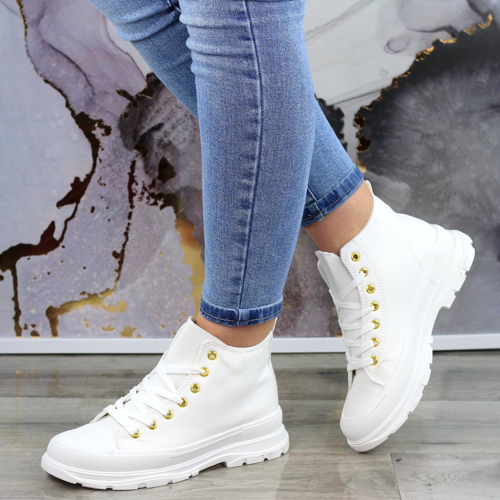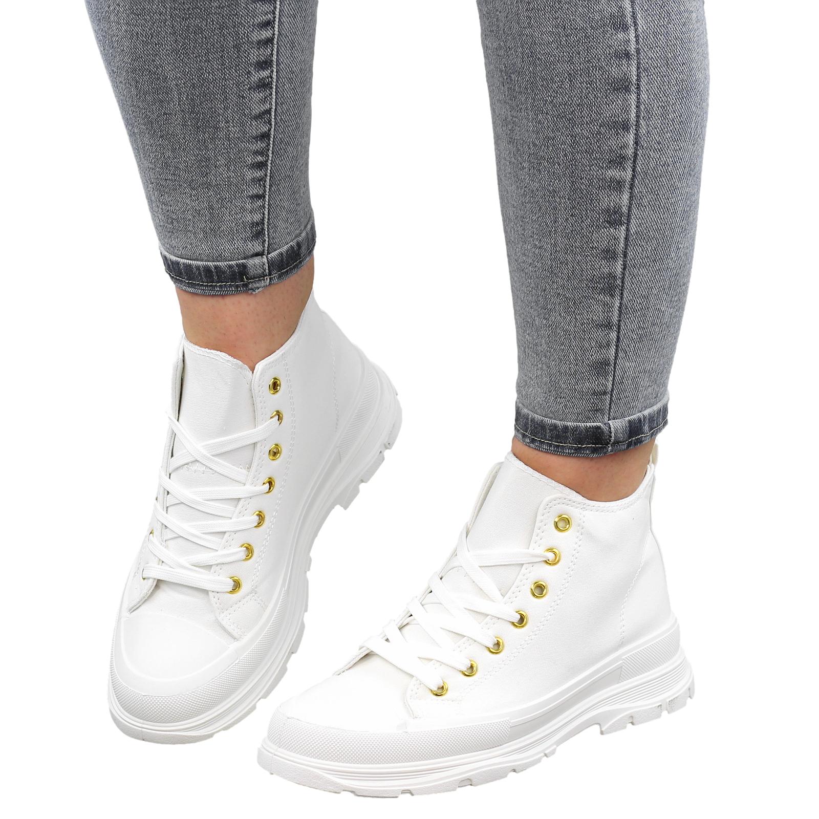 BIAŁE WYŻSZE SZNUROWANE TRAMPKI DAMSKIE STAR