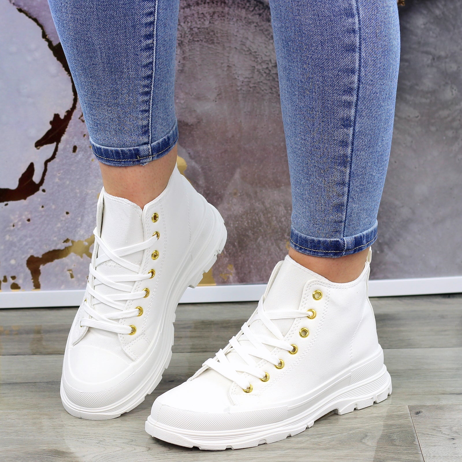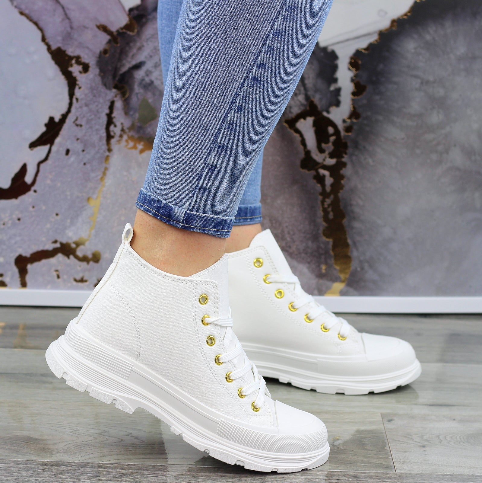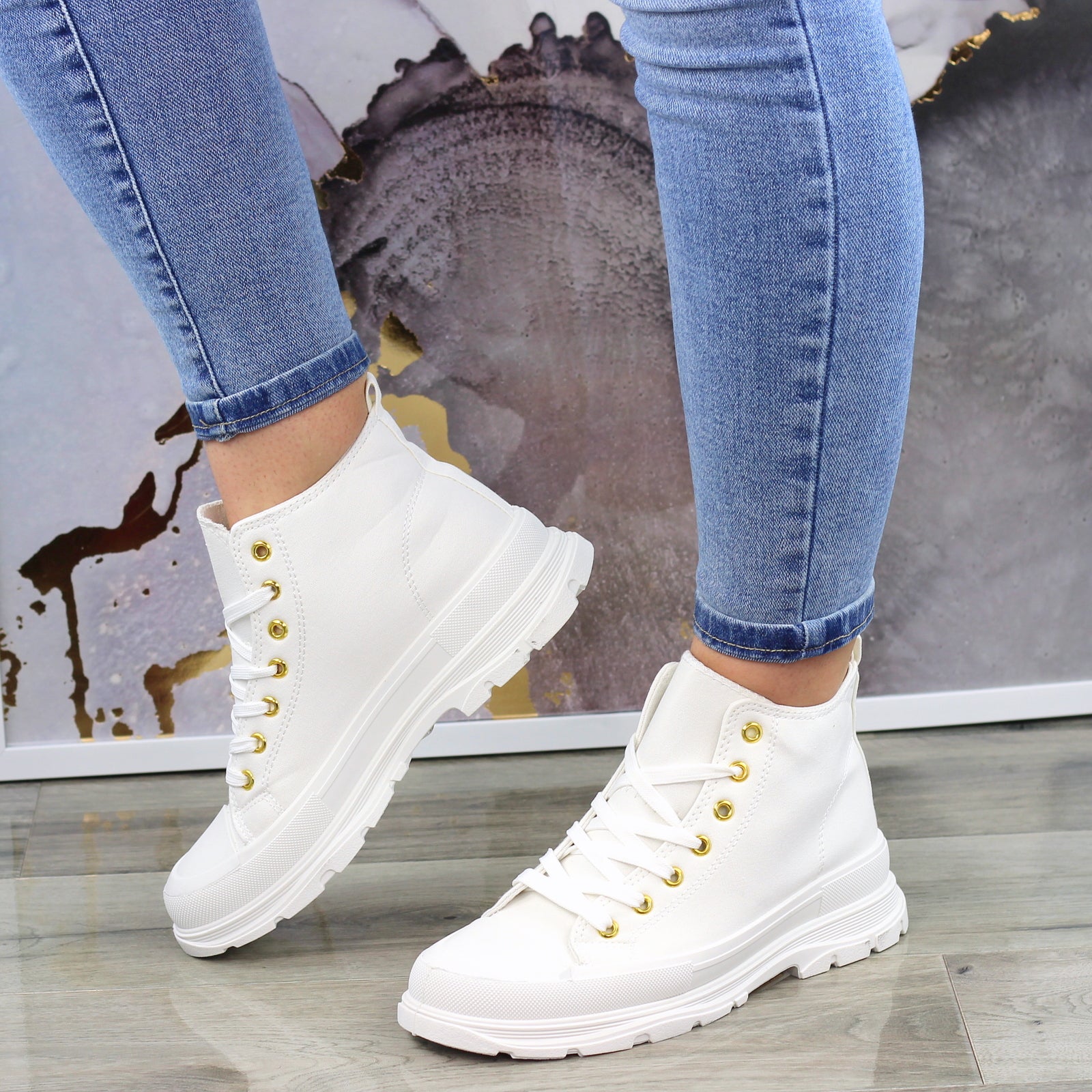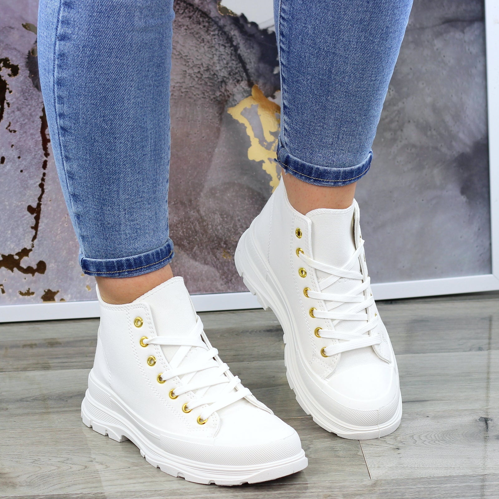BIAŁE WYŻSZE SZNUROWANE TRAMPKI DAMSKIE STAR