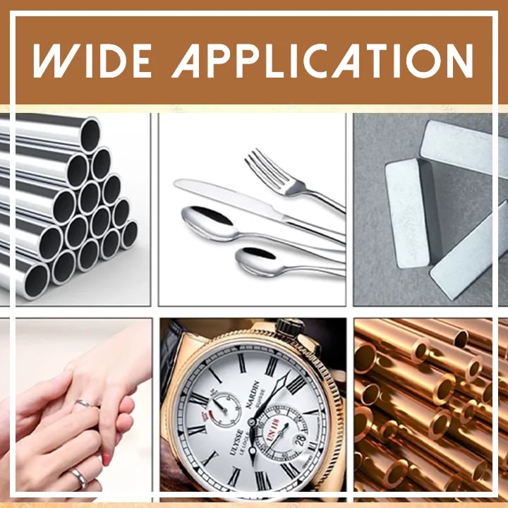 - SZEROKIE ZASTOSOWANIE: Szeroko stosowane do miedzi, mosiądzu, chromu, srebra sterling, aluminium, stali nierdzewnej, złota itp.