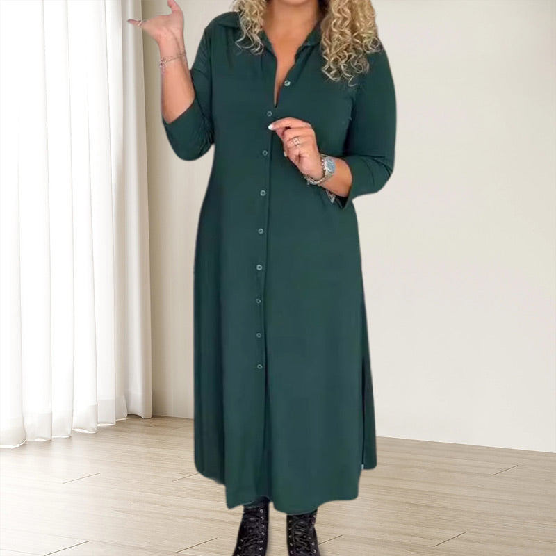 ZAPIĘCIE Z PRZODU – Sukienka ma wygodne zapięcie na guziki z przodu, które pozwala na dopasowanie dekoltu do indywidualnych preferencji. Ten funkcjonalny detal nie tylko podkreśla styl sukienki, ale także ułatwia jej noszenie.