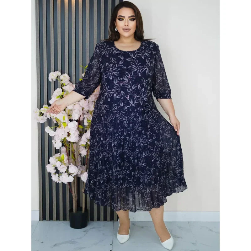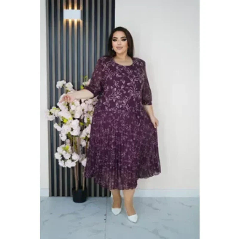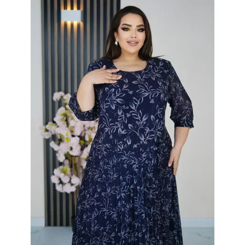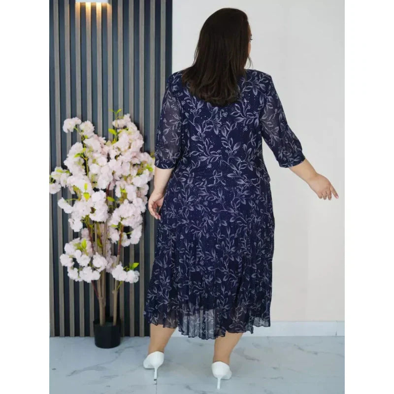 W skład pakietu wchodzą: 1* Sukienka maxi z okrągłym dekoltem i rękawami 3/4, z nadrukiem