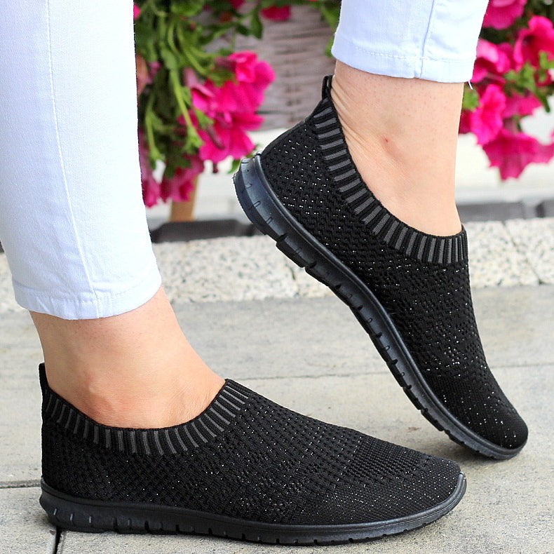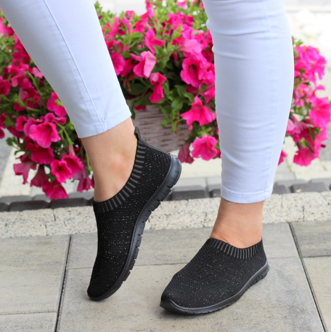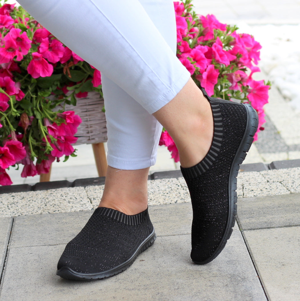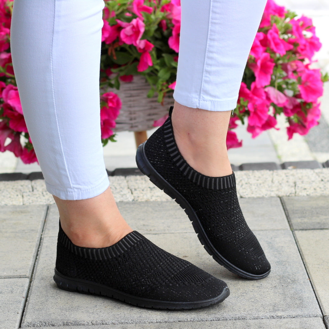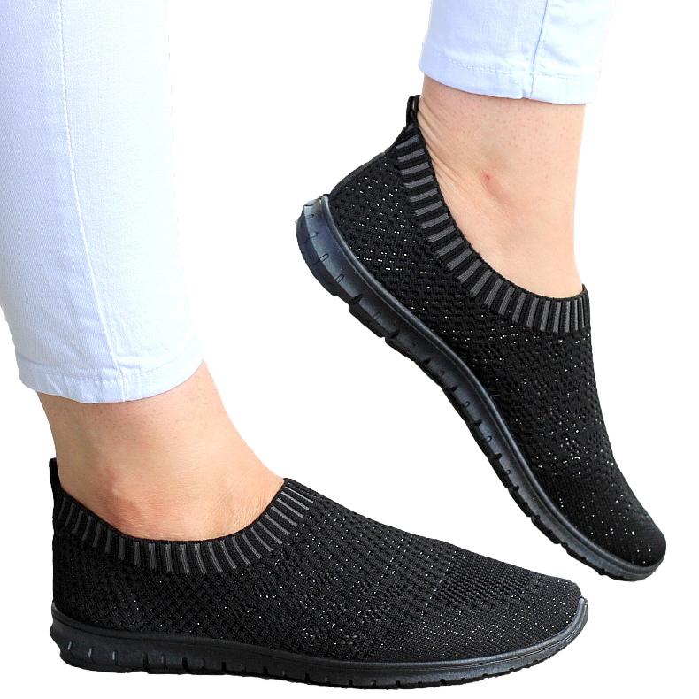 CZARNE ELASTYCZNE TENISÓWKI TRAMPKI DAMSKIE WSUWANE
