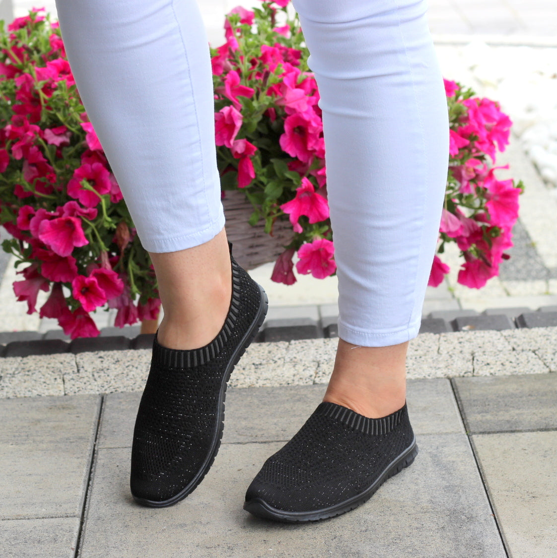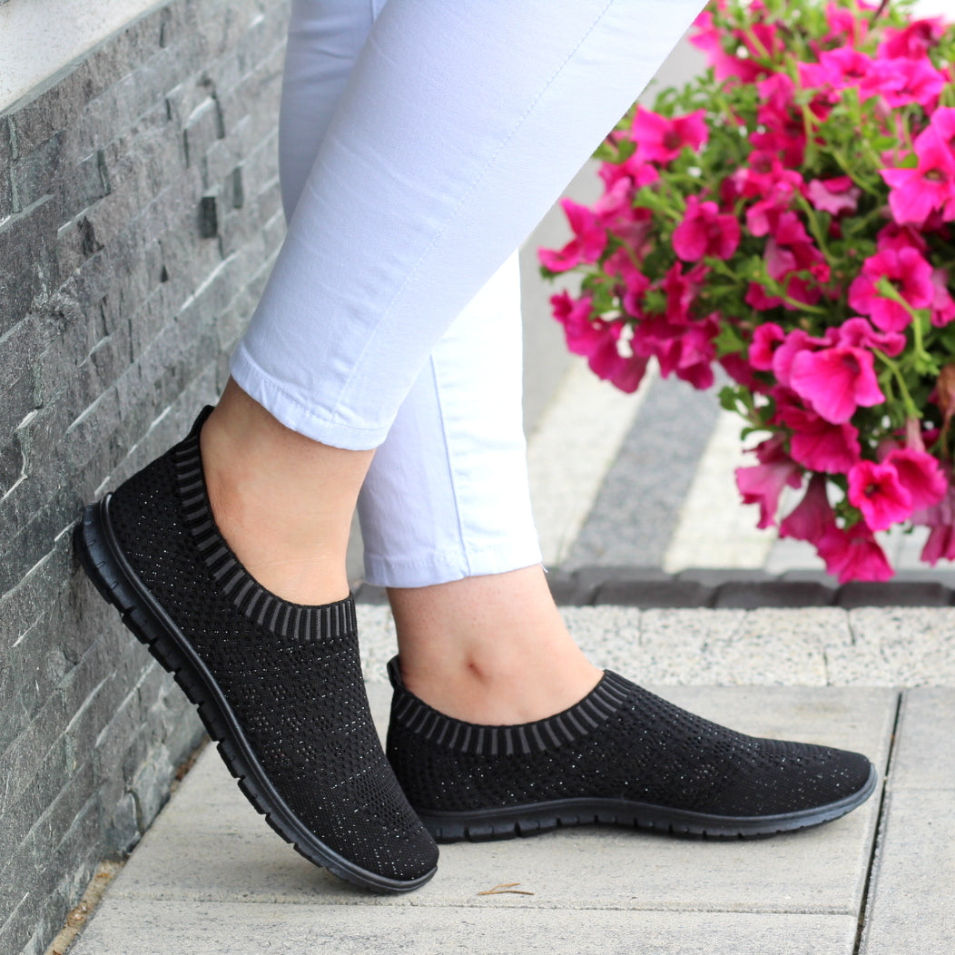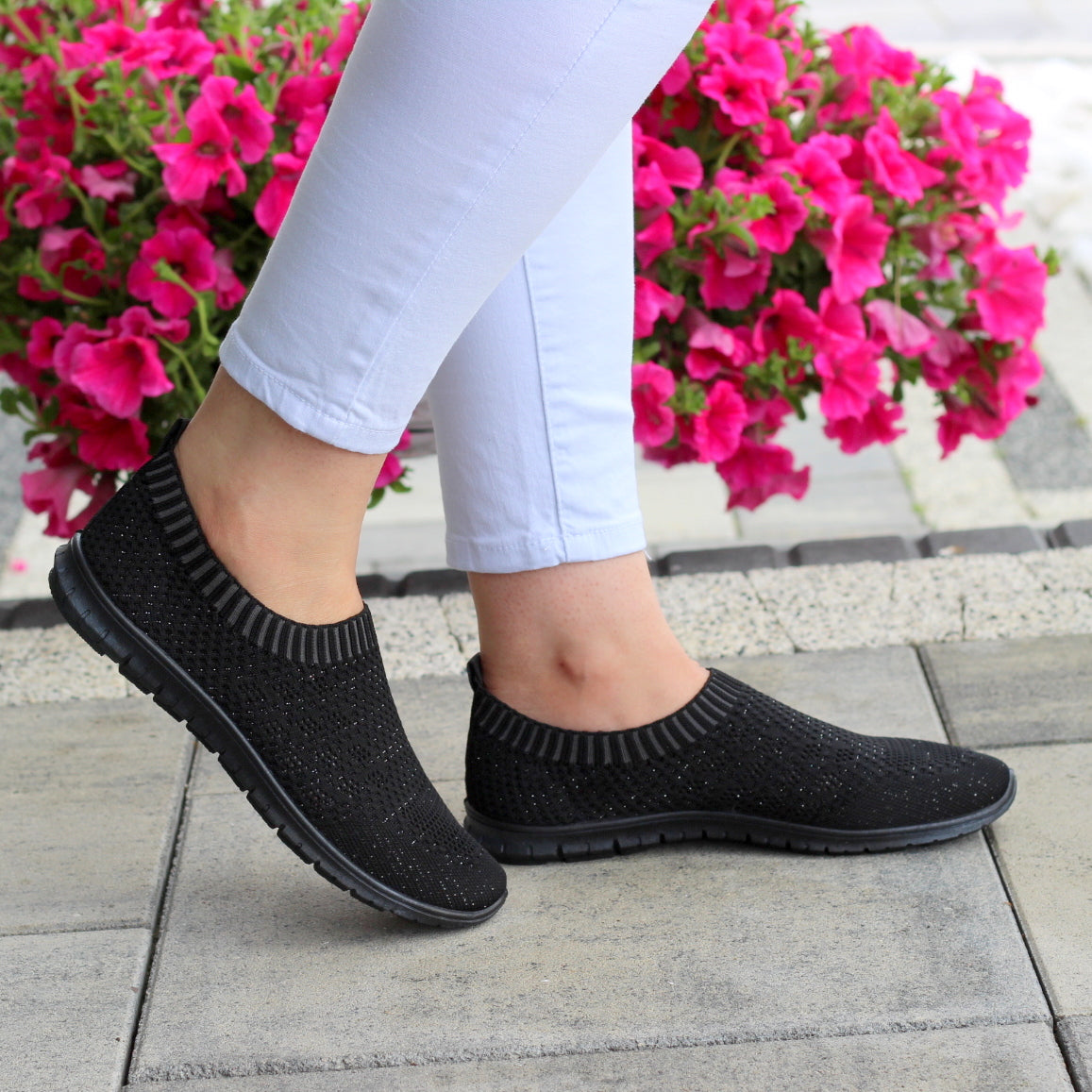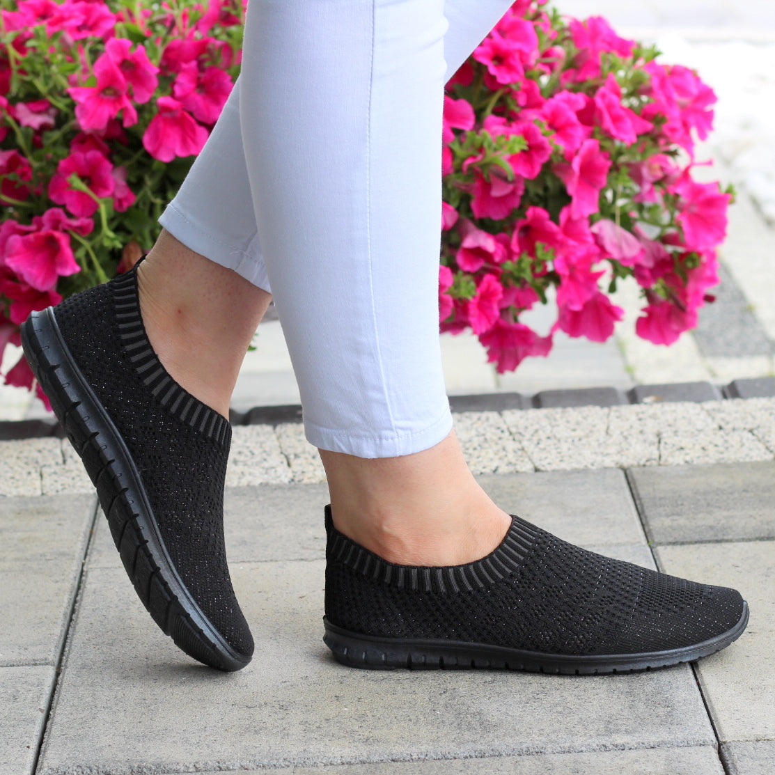CZARNE ELASTYCZNE TENISÓWKI TRAMPKI DAMSKIE WSUWANE