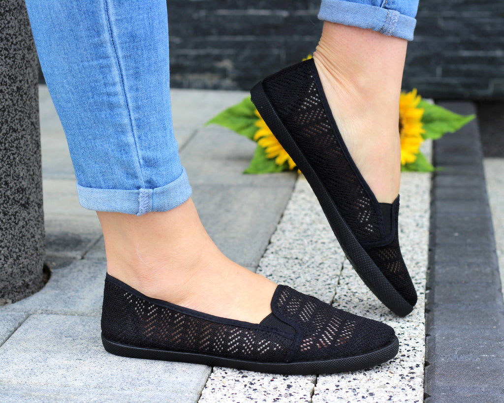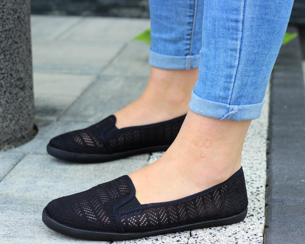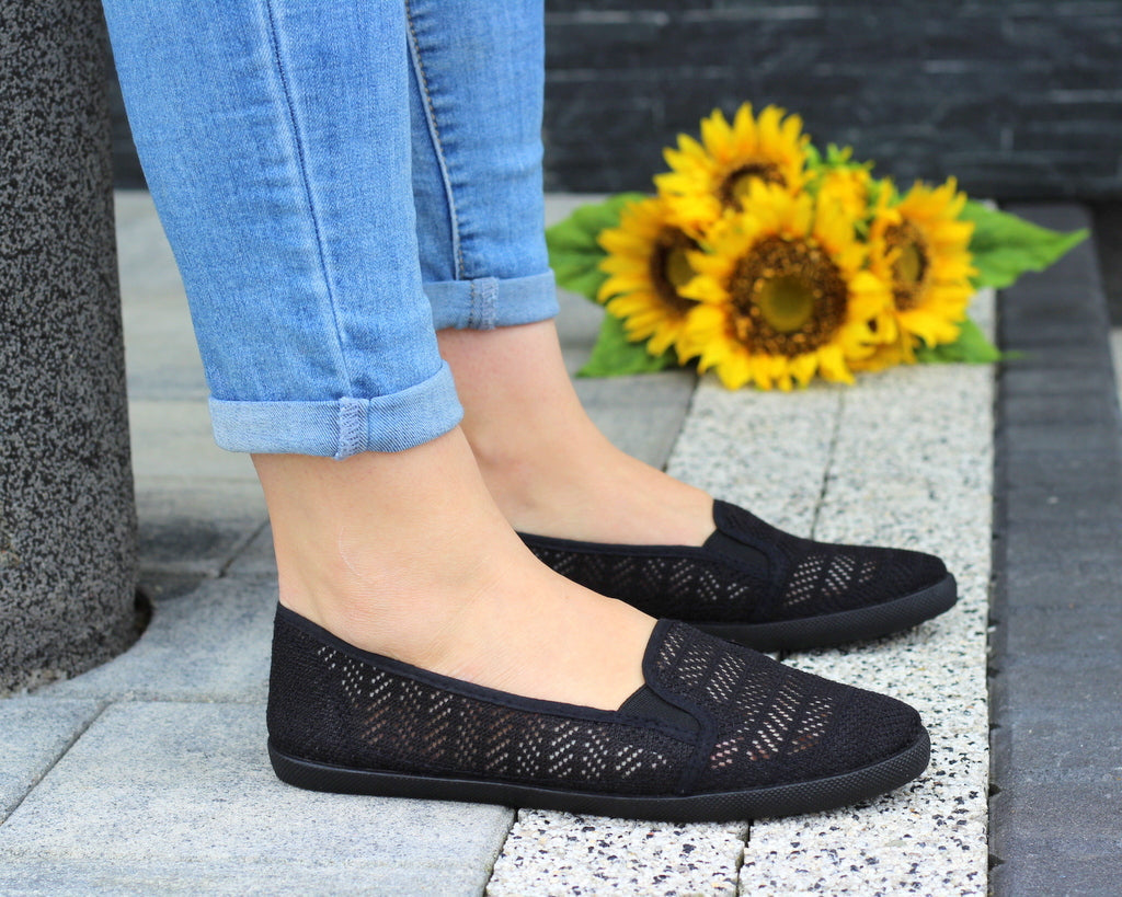 CZARNE TENISÓWKI KORONKOWE NA LATO