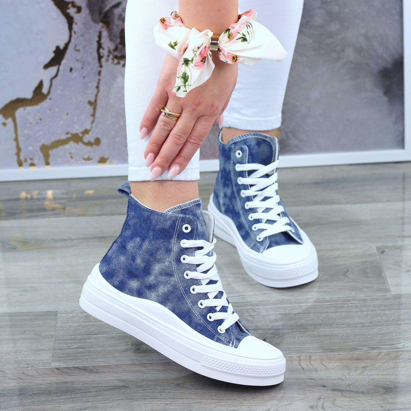 DARK BLUE JEANS WYŻSZE TRAMPKI DAMSKIE NA GRUBEJ PODESZWIE