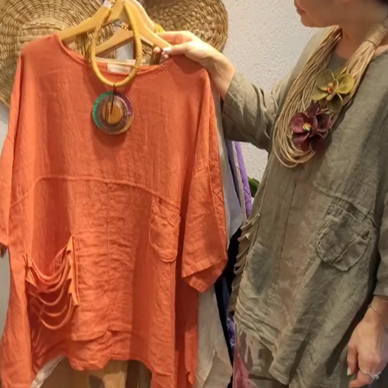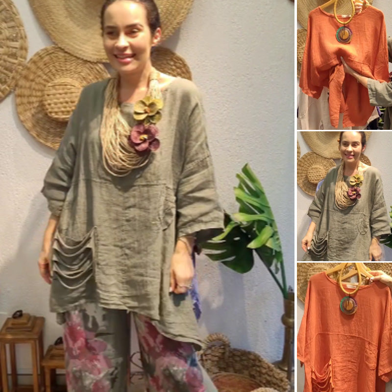 ✨Lniany top z kieszeniami bocznymi dla kobiet o luźnym kroju