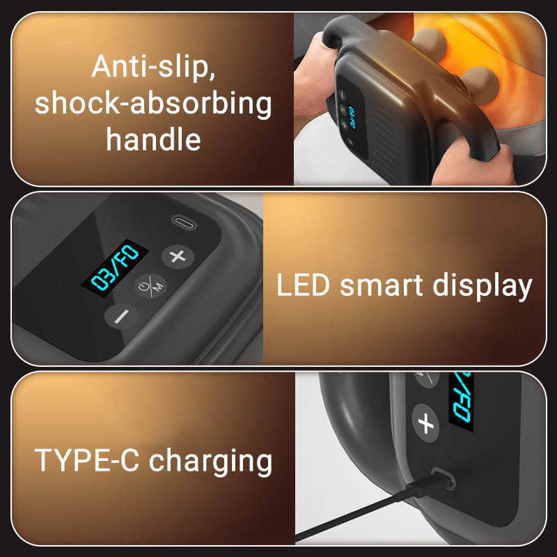 GŁĘBOKI RELAKS MIĘŚNI: Dzięki sile uderzenia 20 kg możesz osiągnąć głęboki relaks mięśni. Ten masażer głębokich tkanek wnika głęboko w mięśnie, skutecznie łagodząc ból, zmniejszając bolesność i poprawiając krążenie krwi, co przyspiesza regenerację.