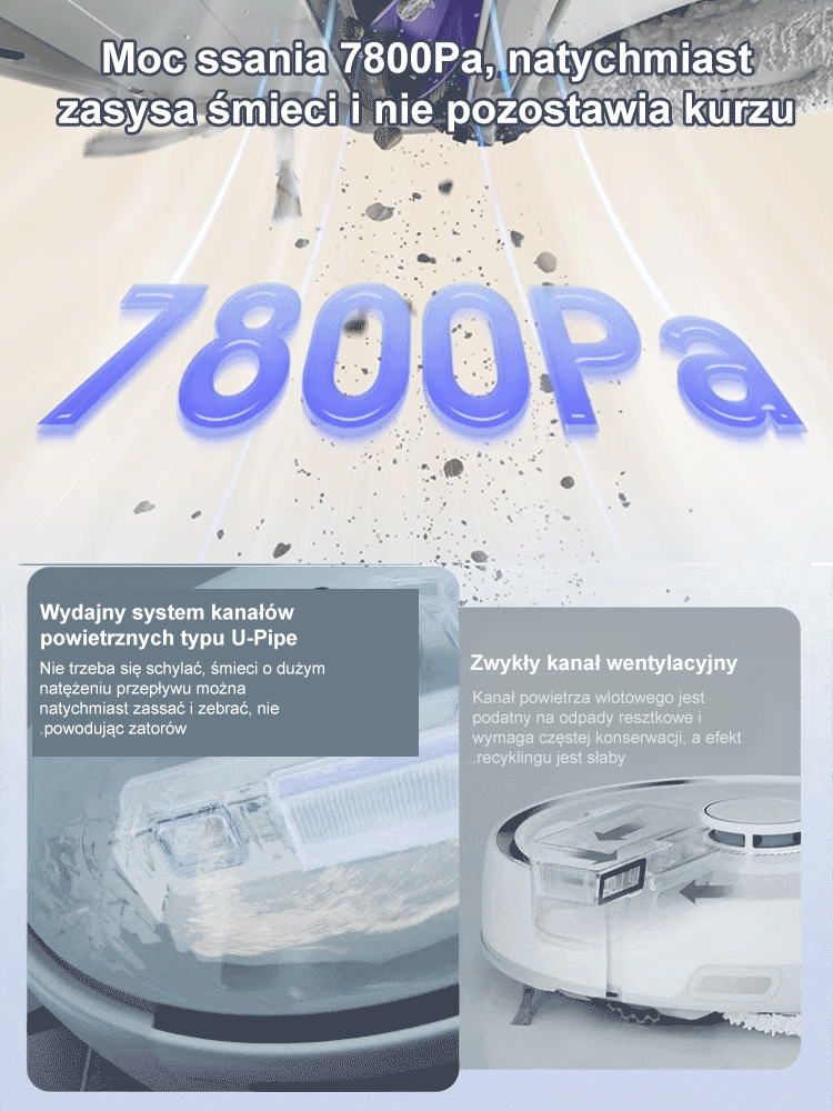 Niski poziom hałasu i wydajny antybakteryjny robot zamiatający