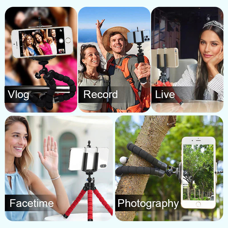 Specjalne elastyczne nóżki zwane nogami ośmiornicy można skręcić w dowolny kształt i bezpiecznie umieścić na nierównych powierzchniach, nierównych plażach. Owiń nóżkami rączki lampę, studnię, drzewo lub inny przedmiot ze stabilnym kokonem. Idealny wybór do uwieczniania cudownych chwil.