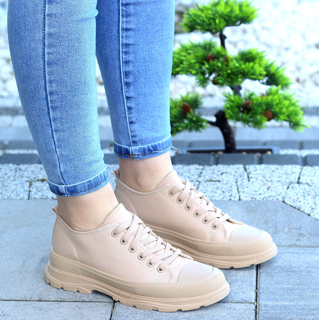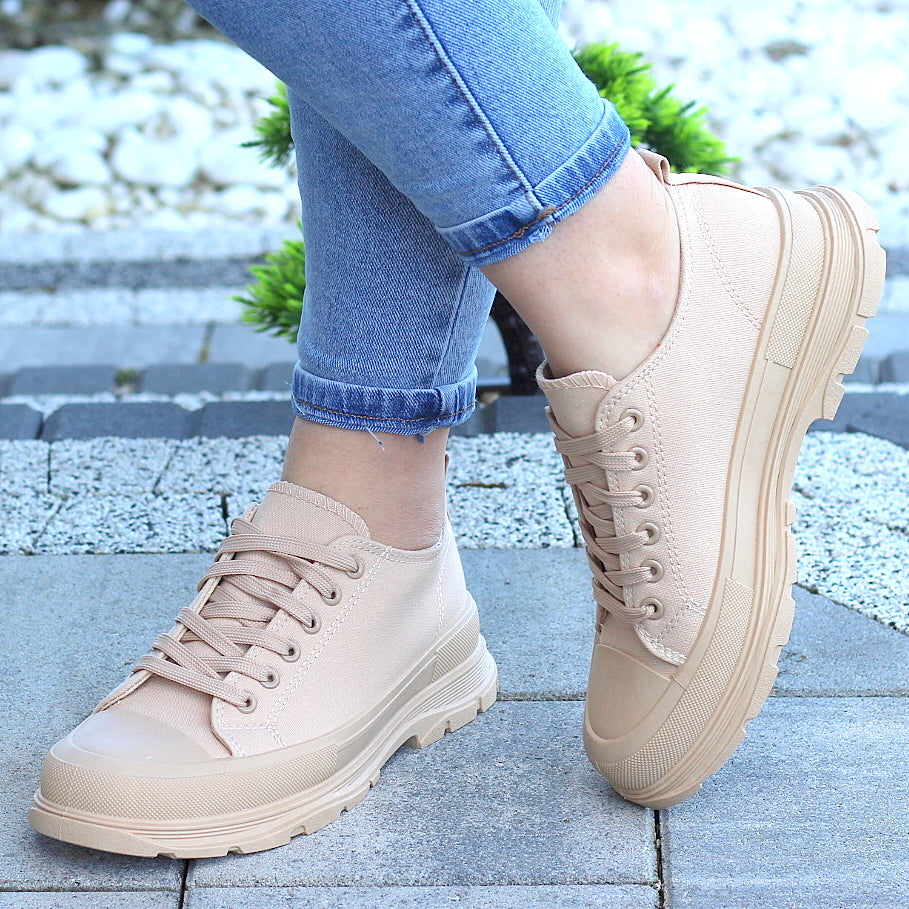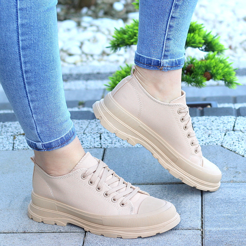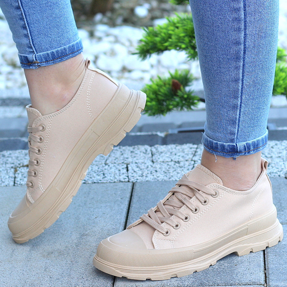 Krótkie Beżowe Trampki Damskie Sznurowane Star
