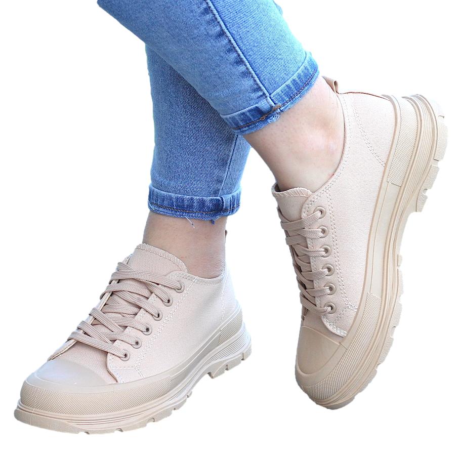Beżowe miękkie trampki mięciutkie wsuwane slim na wygodnej podeszwie