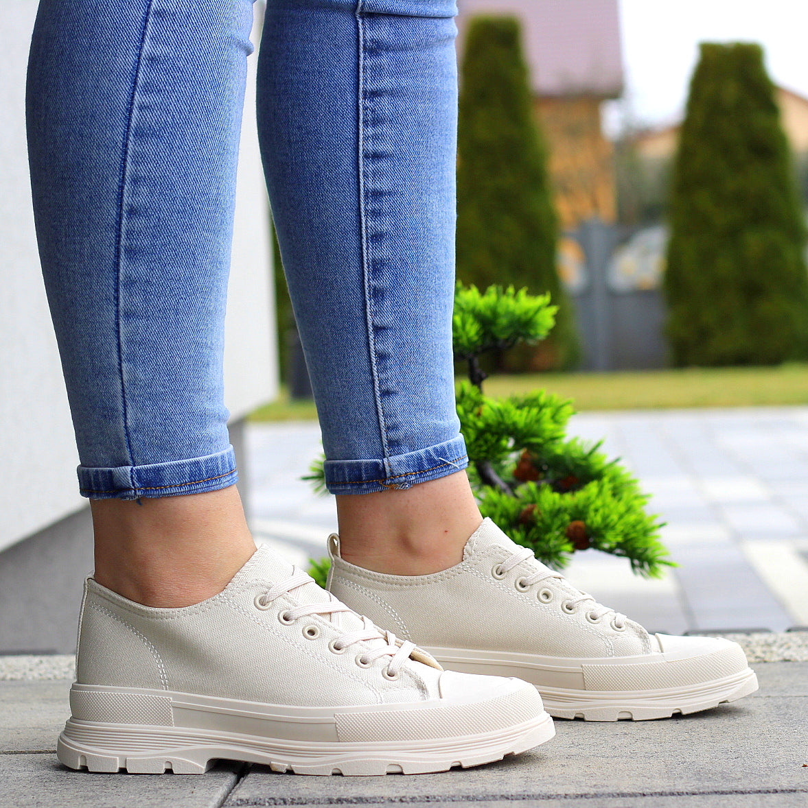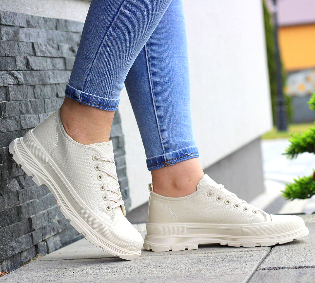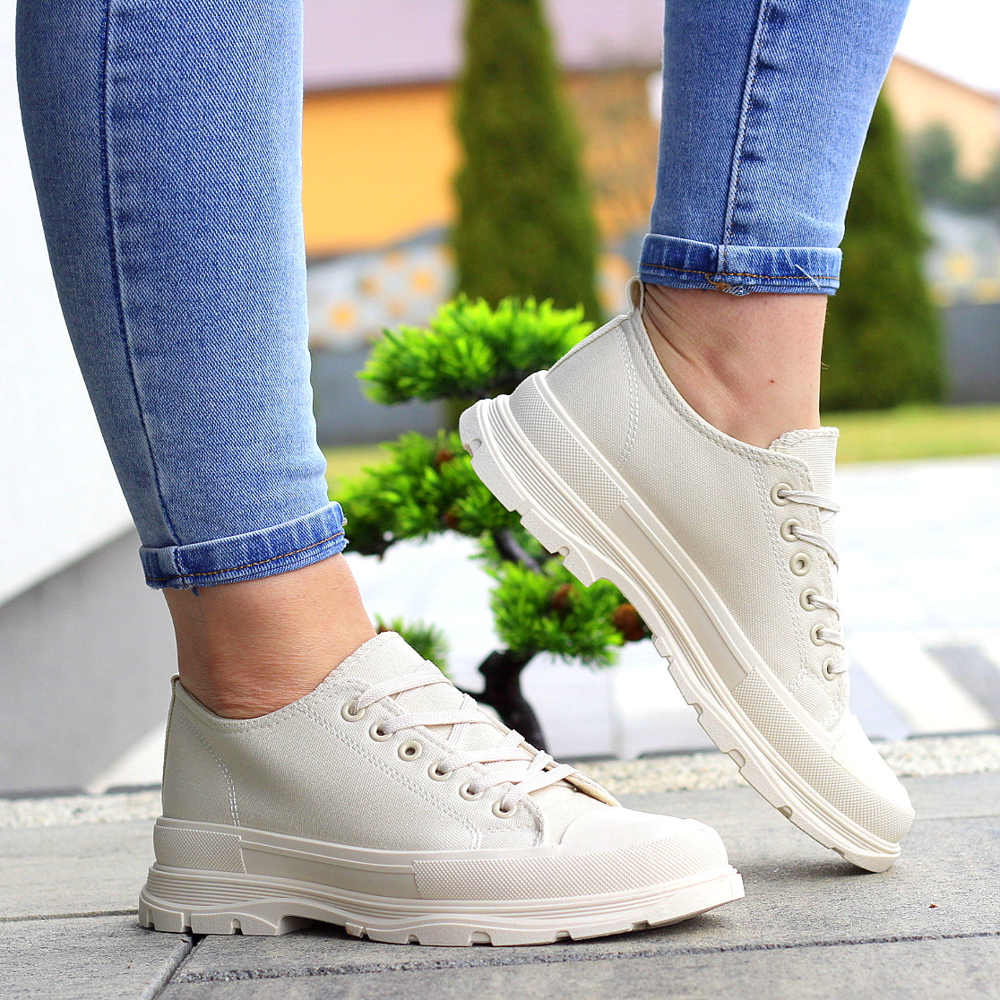 Krótkie Jasno Beżowe Trampki Damskie Sznurowane Star