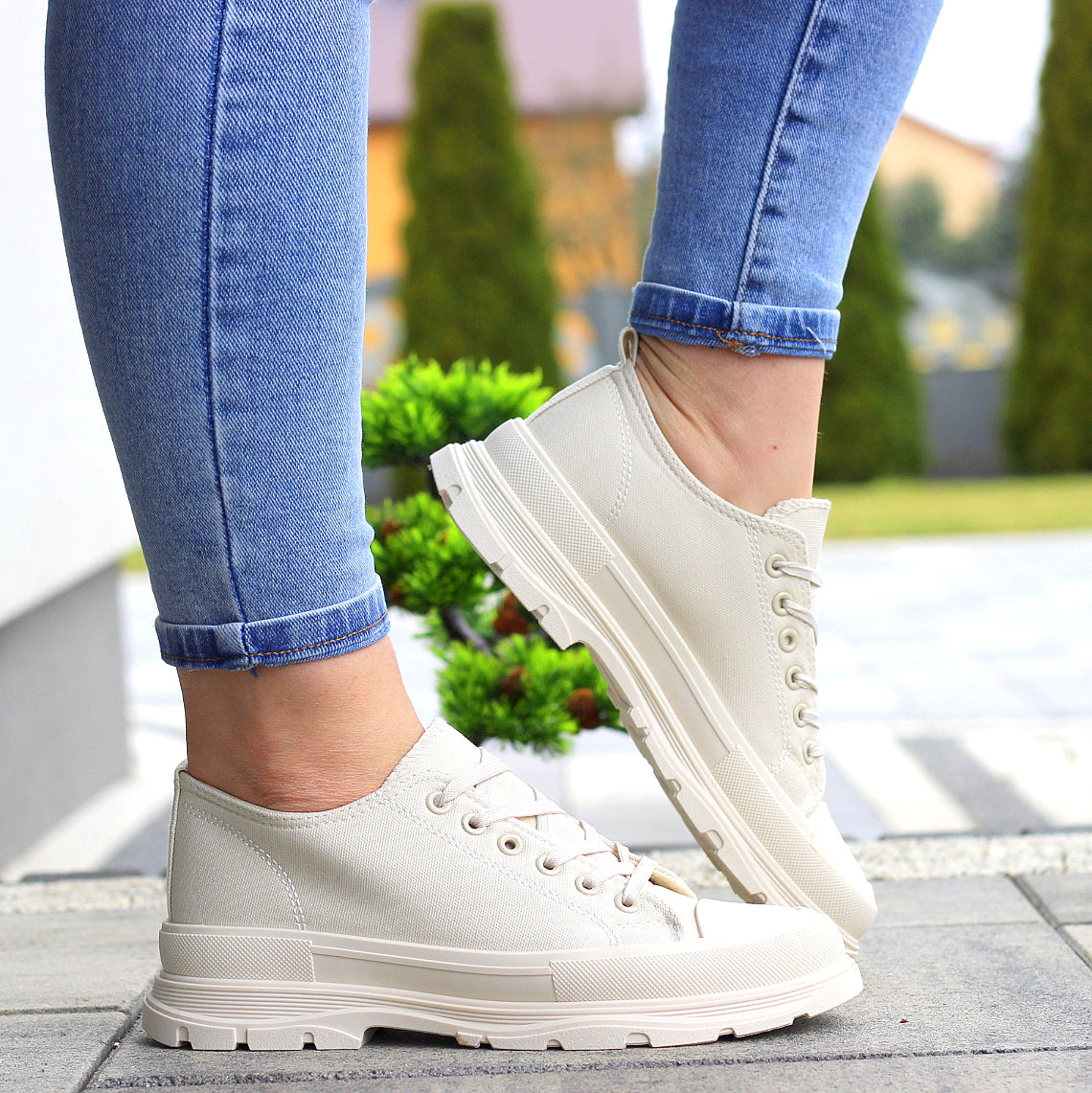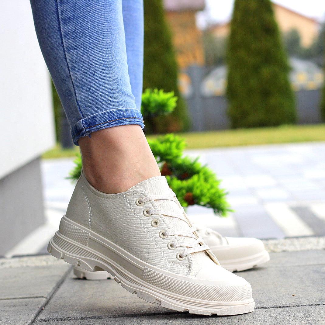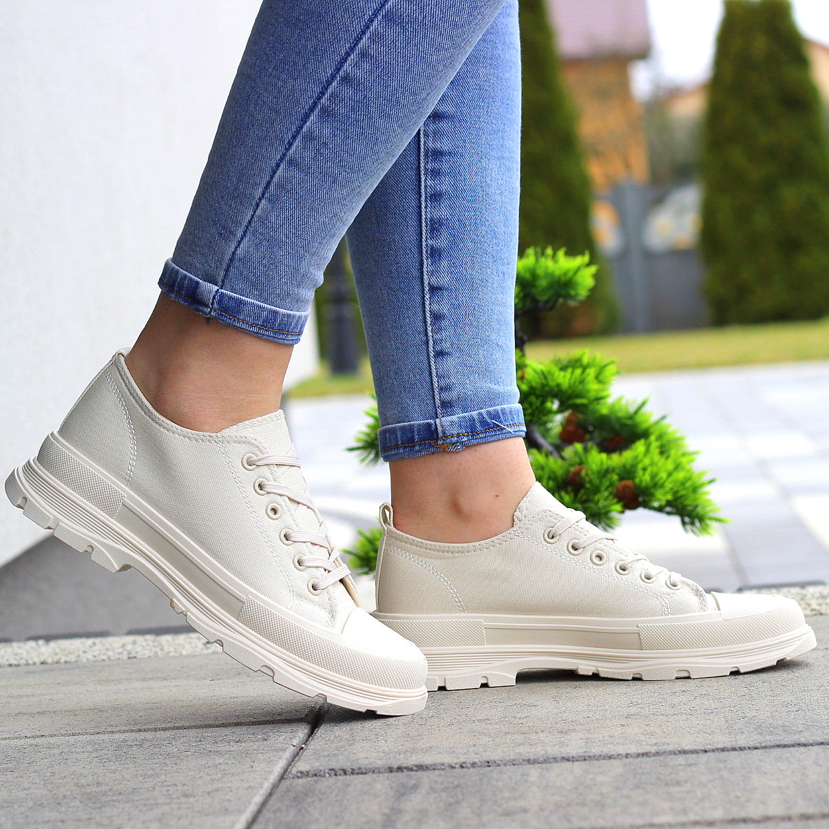 Krótkie Jasno Beżowe Trampki Damskie Sznurowane Star