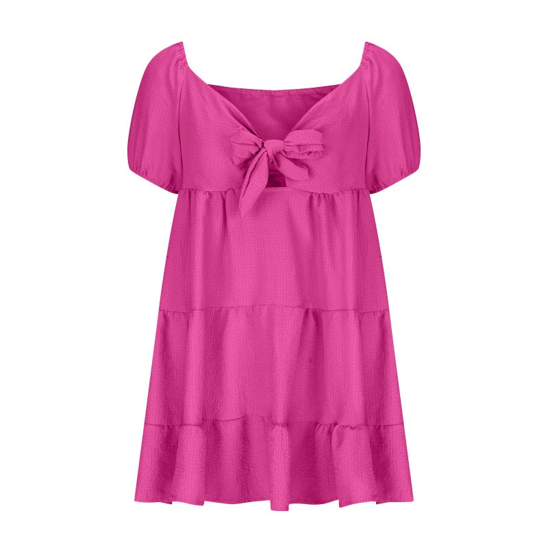 STYLOWE WYCIĘCIE: Sukienka z eleganckim wycięciem z przodu i ozdobną kokardą doda zalotnego, przyciągającego wzrok akcentu do letniej stylizacji.