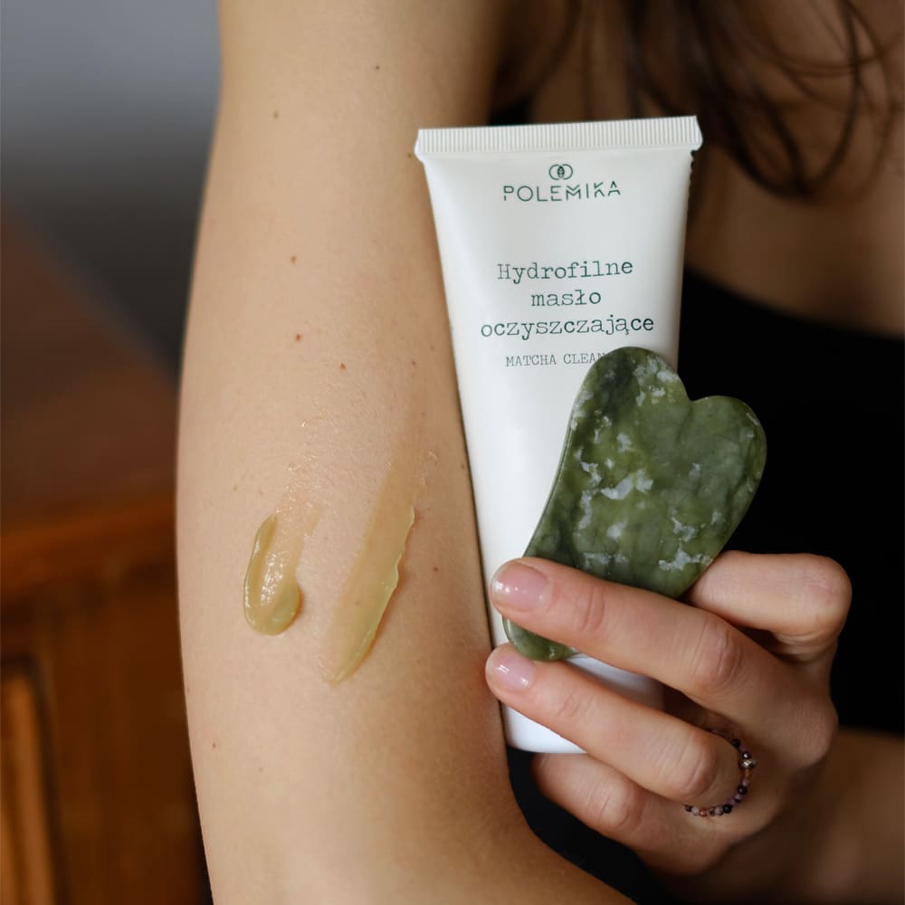 Zestaw: Hydrofilne masło oczyszczające + jadeitowa płytka gua sha do masażu twarzy i szyi