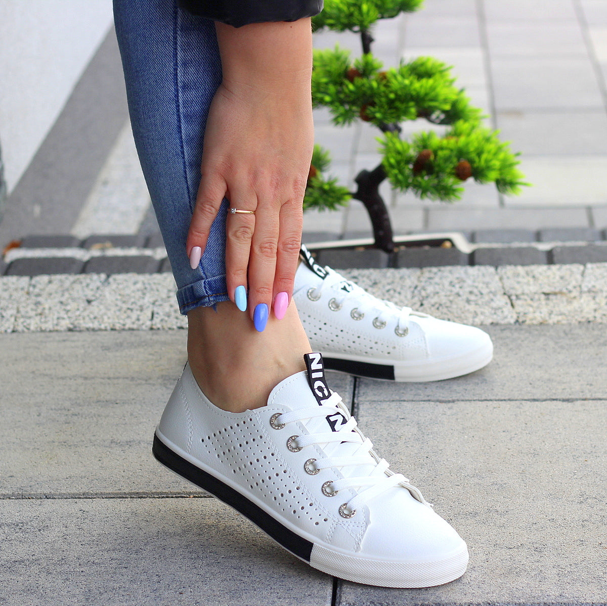 Miękkie, wygodne białe tenisówki damskie BLACK
