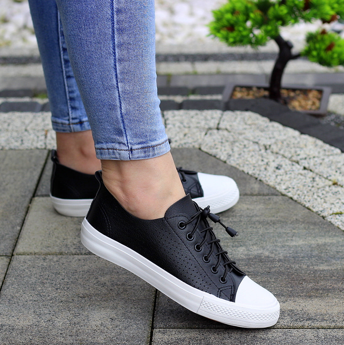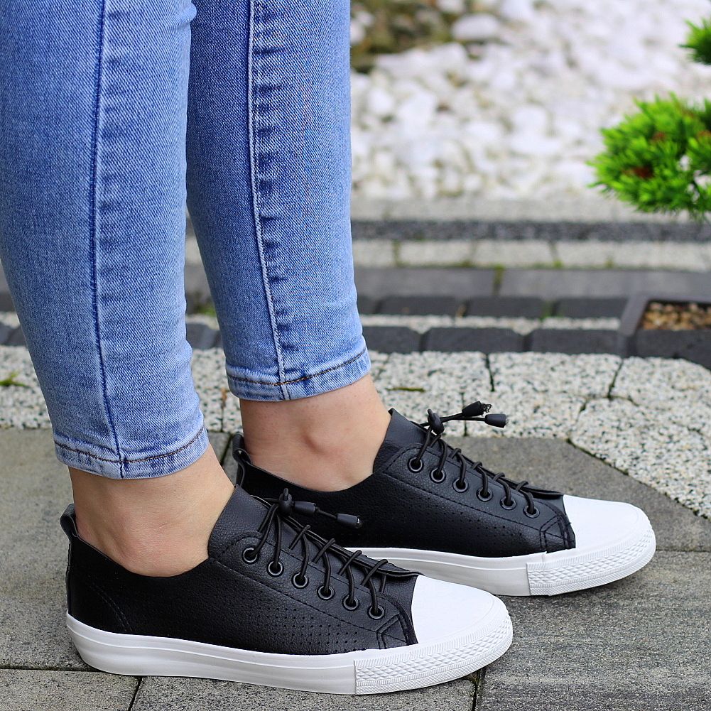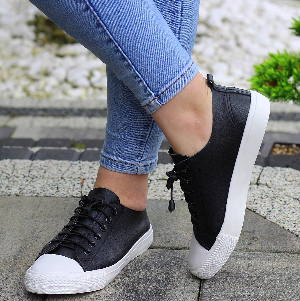 Miękkie, wygodne czarne tenisówki damskie w dziurki Great