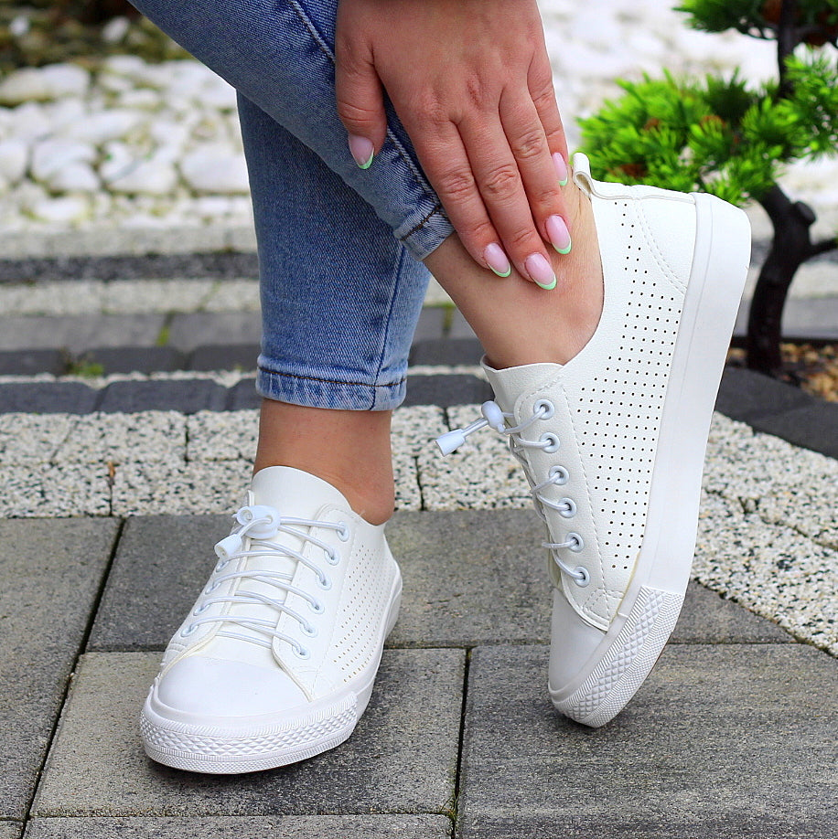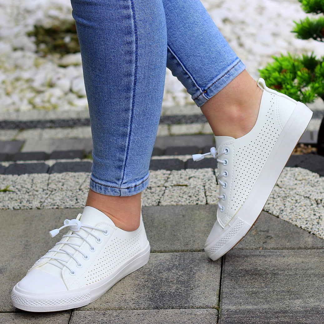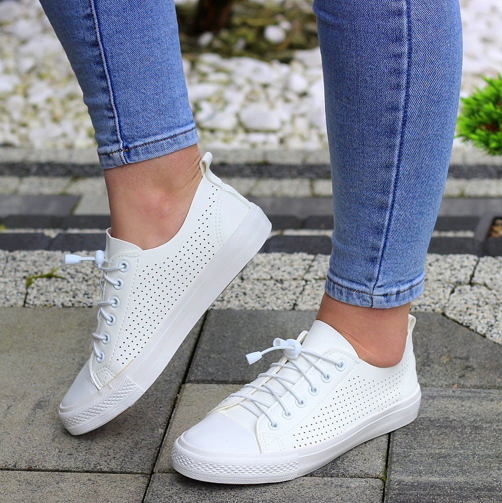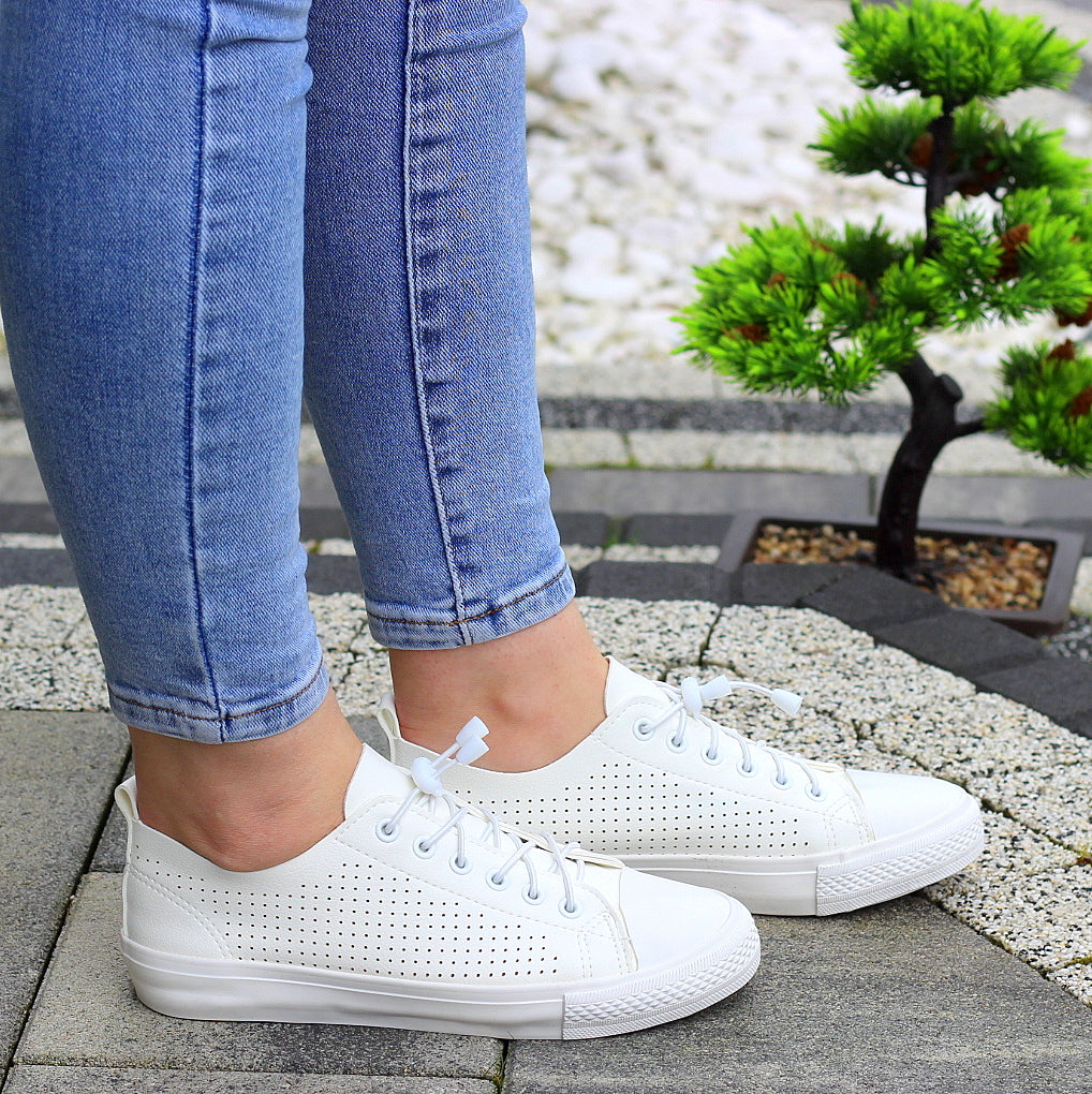 Miękkie, wygodne czarne tenisówki damskie w dziurki Great